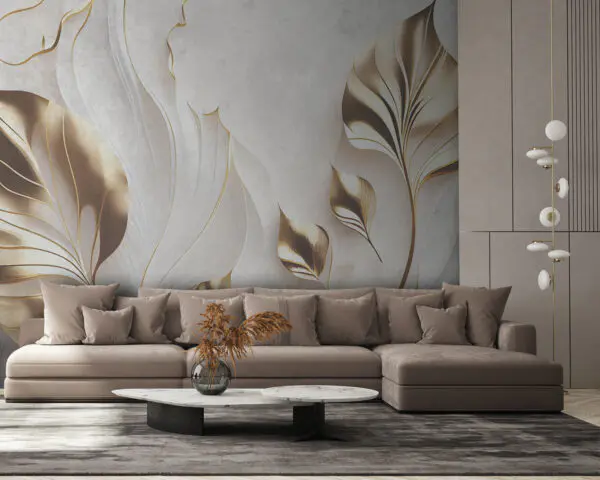 Fototapet Frunze metalice elegante pe nuanțe închise