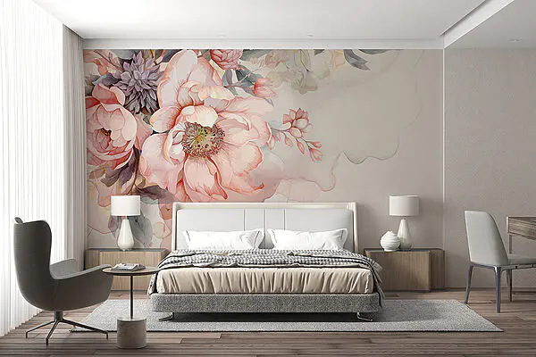 Fototapet Bujori în tonuri moi de acuarelă