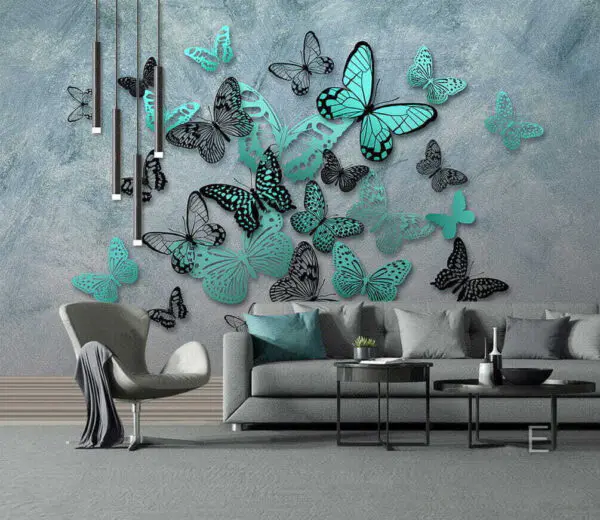 Fototapet Fluturi care zboară fluturi și flori
