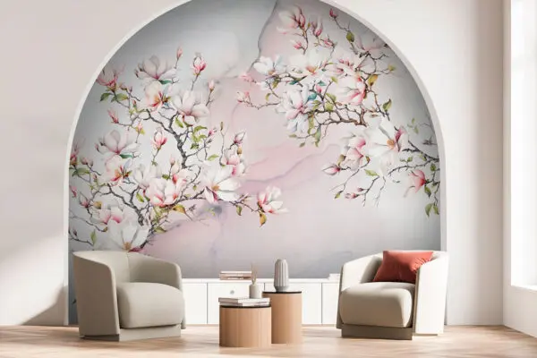 Fototapet Sculptură de flori albe pe o suprafață albă