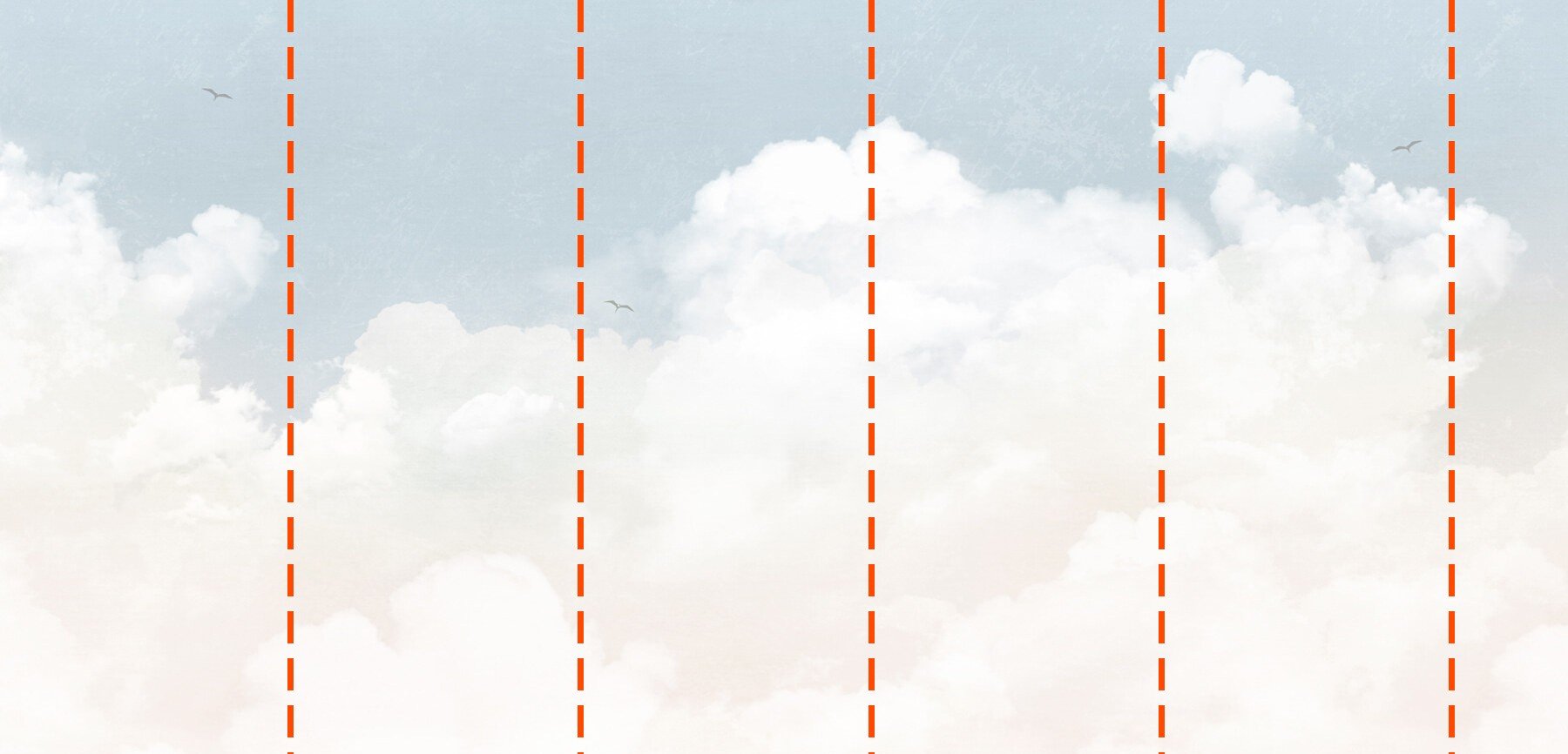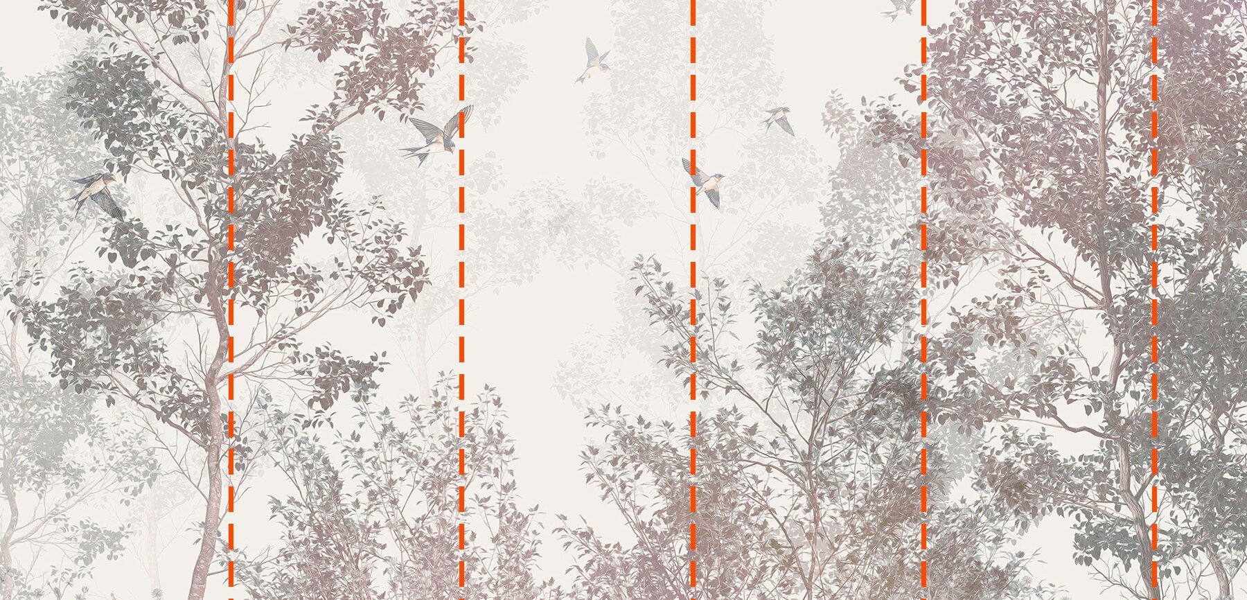 Fototapet Câmp verde cu copaci și păsări care zboară pe cer