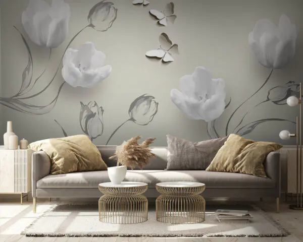 Fototapet Flori elegante înconjurate de frunziș luxuriant