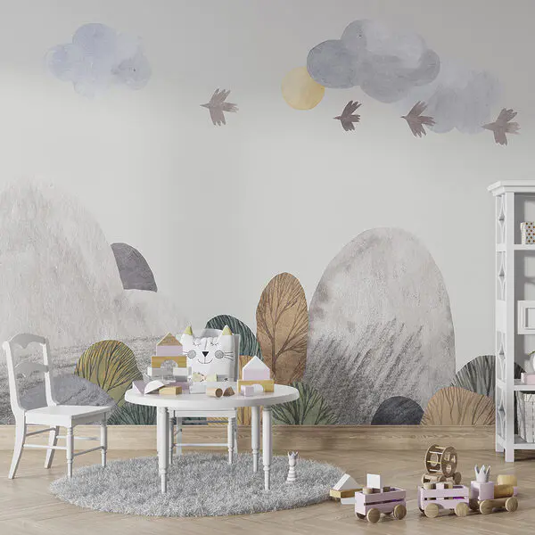 Fototapet Păsări care zboară deasupra unei păduri