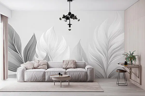 Fototapet Frunze elegante în nuanțe moi de alb