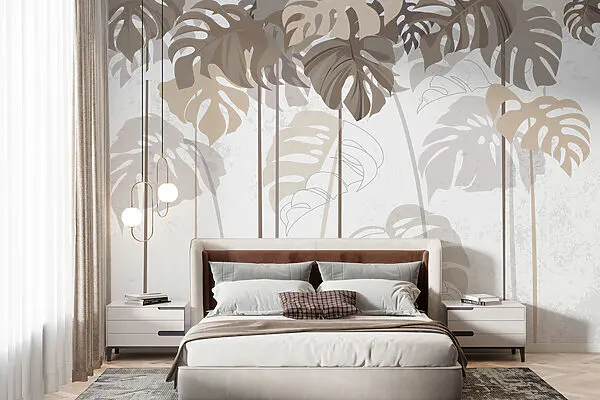 Fototapet Model de frunze tropicale pe fundal bej