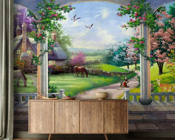 Fototapet Pictura acuarelă a unei case pe stâlpi