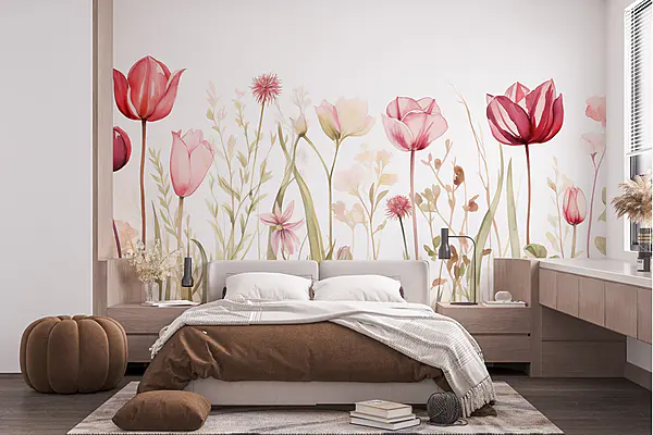 Fototapet Pictură în acuarelă a unei păduri și a unui lac