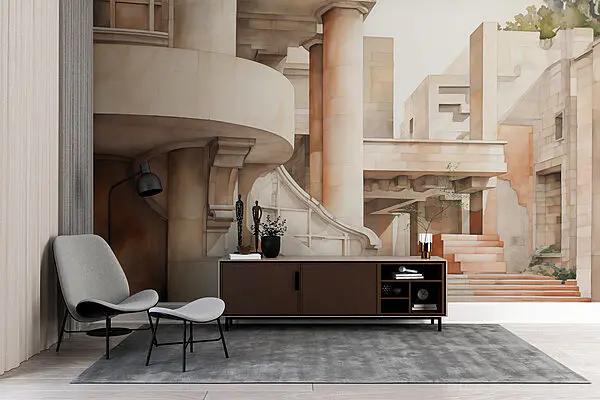 • -40% Vânzare! Reduceri! Fototapet Fototapet Pictura unei clădiri cu scări și trepte (SKU: w02498)