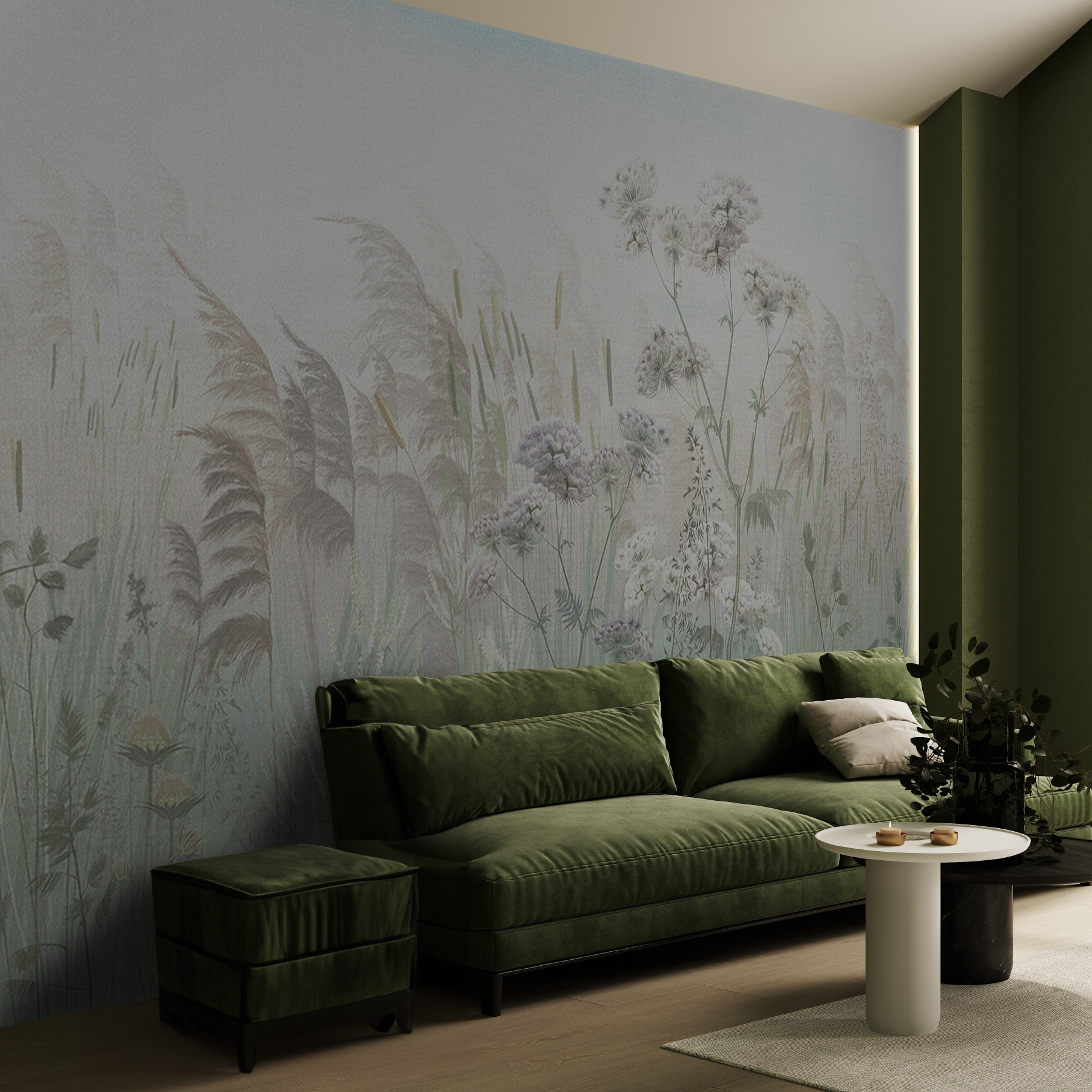 Transformați-vă spațiul într-o evadare încântătoare cu pictura murală “Serene Meadow in Gentle Morning Haze”. Imaginați-vă că vă treziți într-o scenă liniștită de ierburi moi și frunze șoptite, ca și cum o ceață delicată tocmai a sărutat pajiștea de bună dimineața. Fiecare floare pare să se legene ușor, invitând un sentiment de calm în orice cameră. Această pictură murală nu este doar o acoperire de perete – este ca o gură de aer proaspăt, transformând agitația de zi cu zi într-o retragere liniștită. Prietenii s-ar putea să treacă pe aici și să spună: “Hei, te-ai mutat la țară?” Perfect pentru vibrații relaxante sau chiar pentru un colțișor de lectură confortabil. Lăsați această pictură murală să vă transporte!