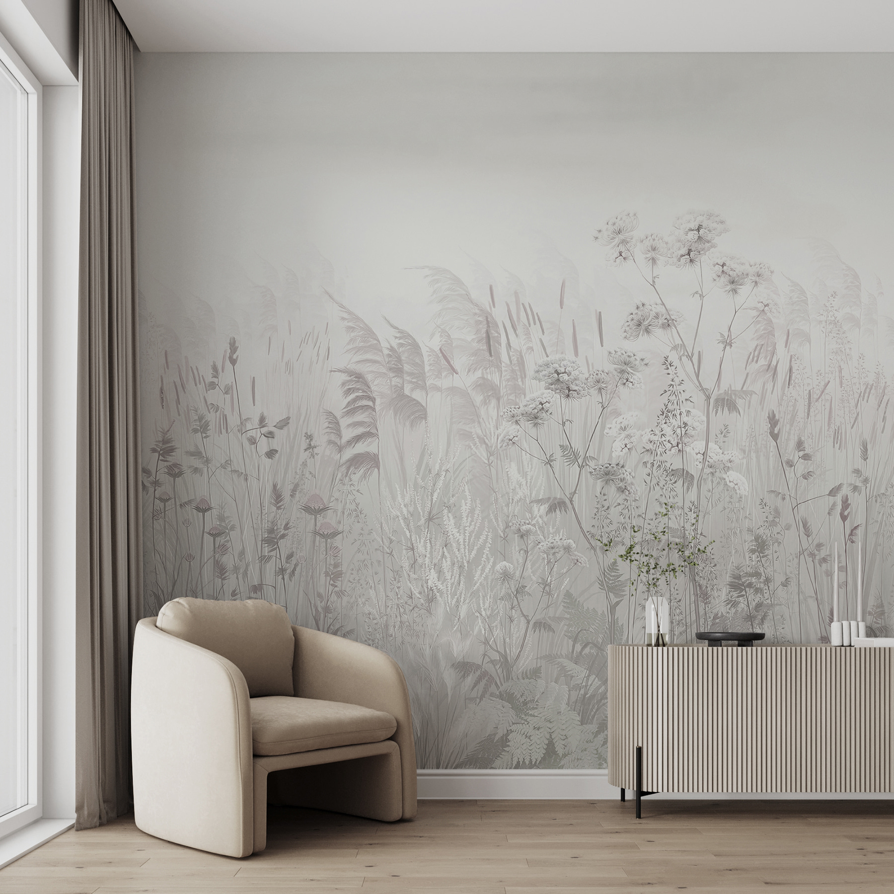 Transformați un spațiu într-o evadare de vis cu această pictură murală “Ethereal Meadow”. Imaginați-vă că pășiți într-o pajiște moale și șoptitoare, unde tonurile atenuate ale naturii creează un vibe calmant. Este ca și cum ai avea o bucată de liniște chiar pe perete. Perfect pentru acele zile în care viața pare un pic prea agitată – aruncați doar o privire și este ca și cum ați simți o briză ușoară.