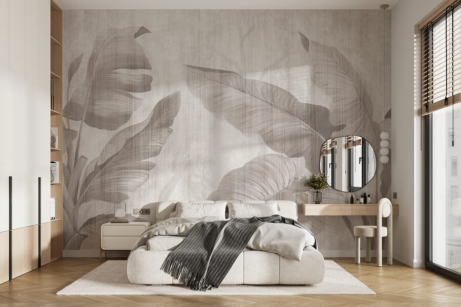 Imaginați-vă că pășiți într-un spațiu care se simte ca o plimbare senină printr-o pădure de vis. Această pictură murală monocromă elegantă cu frunze adaugă o notă de calm natural chiar pe pereții dvs. Modelele curgătoare creează un dans blând al frunzelor care par aproape vii, șoptindu-vă secretele din aer liber. Este perfect pentru un colț de lectură confortabil sau pentru un dormitor liniștit. Imaginați-vă cum vă relaxați cu o carte bună, înconjurați de această atmosferă liniștită. Este ca și cum ai primi o îmbrățișare din partea naturii – chiar și în interior. Cine ar fi crezut că un perete poate fi atât de răcoritor? Perfectă pentru cei care apreciază micile detalii din viață, această pictură murală aduce un farmec fără efort care poate lumina orice cameră.