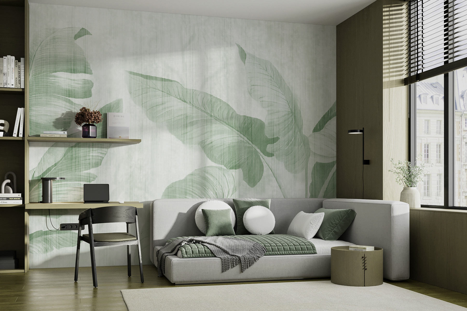 Transformați orice cameră într-o oază de seninătate cu această pictură murală captivantă cu frunze verzi luxuriante pe un fundal subtil fermecător. Imaginați-vă că pășiți într-un refugiu tropical chiar în casa dvs. – nu este nevoie de pașaport. Perfectă pentru a adăuga un vibe proaspăt spațiului dvs. de locuit, se simte ca și cum natura ar trage cu ochiul. Fie că este vorba de un colț de lectură confortabil sau de un perete îndrăzneț, acest design aduce un sentiment de pace și calm. Prietenii ar putea chiar să vă întrebe dacă aveți o grădină secretă. Este un bun început de conversație! În plus, cui nu-i place să se trezească în fiecare zi cu un pic de magie a frunzelor?