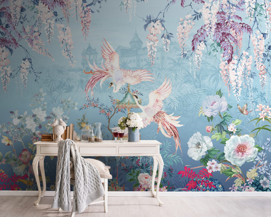 Transformați orice cameră într-o evadare senină cu pictura murală “Păsări elegante în mijlocul florilor înfloritoare”. Imaginați-vă acest lucru: flori vibrante care se învârt în culori blânde, două păsări grațioase în centrul atenției și o notă de fantezie care ar putea face chiar și cei mai severi pereți să zâmbească. Este ca și cum ai aduce o grădină liniștită chiar în interior, perfectă pentru a visa cu ochii deschiși sau pentru a sorbi un ceai în singurătate. Imaginați-vă cum va înveseli un spațiu de locuit sau cum va face un colț de lectură confortabil să se simtă ca o ascunzătoare fermecată. Această pictură murală nu este doar un decor; este o invitație de a vă opri, de a admira și de a vă pierde în frumusețea naturii, făcând în același timp oaspeții să facă o dublă privire. Cine ar fi crezut că pereții pot fi atât de primitori?