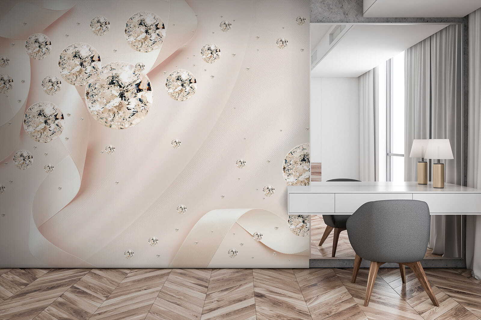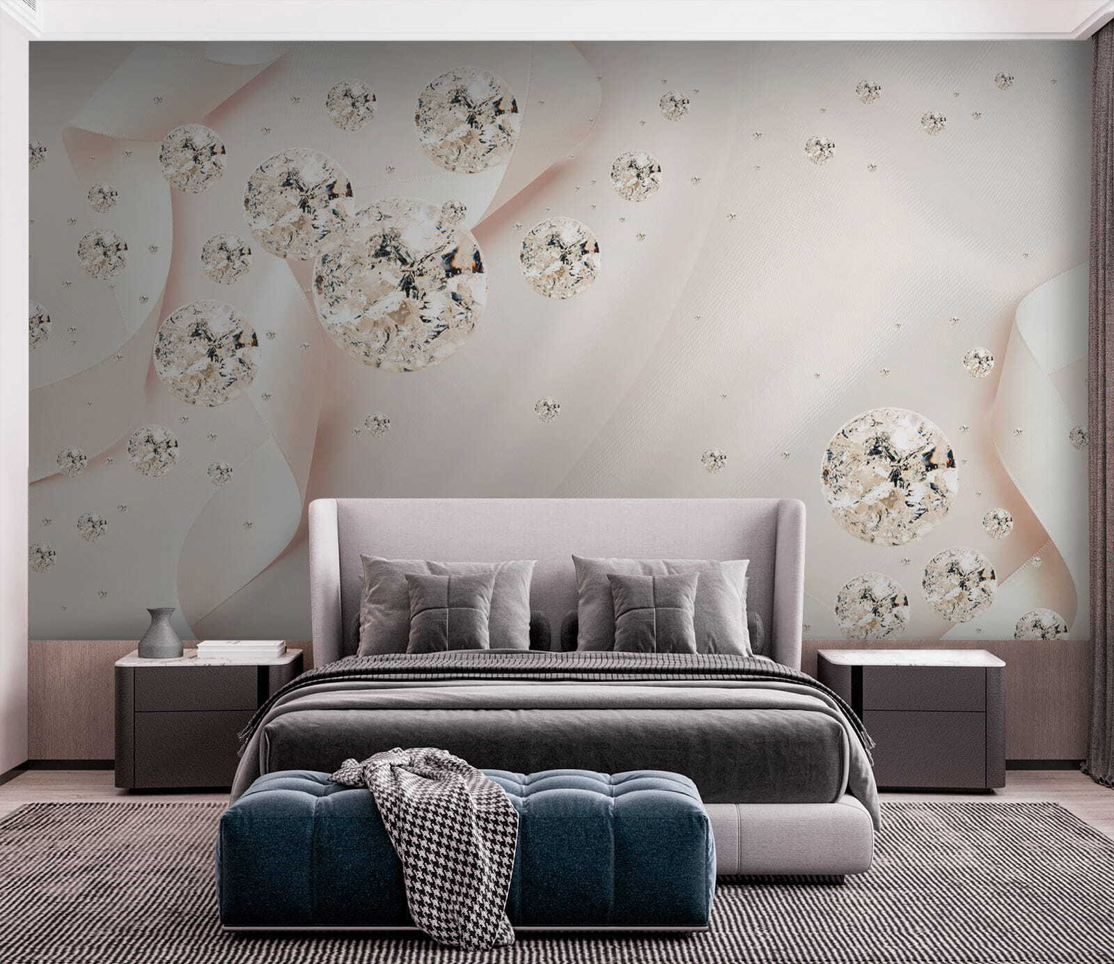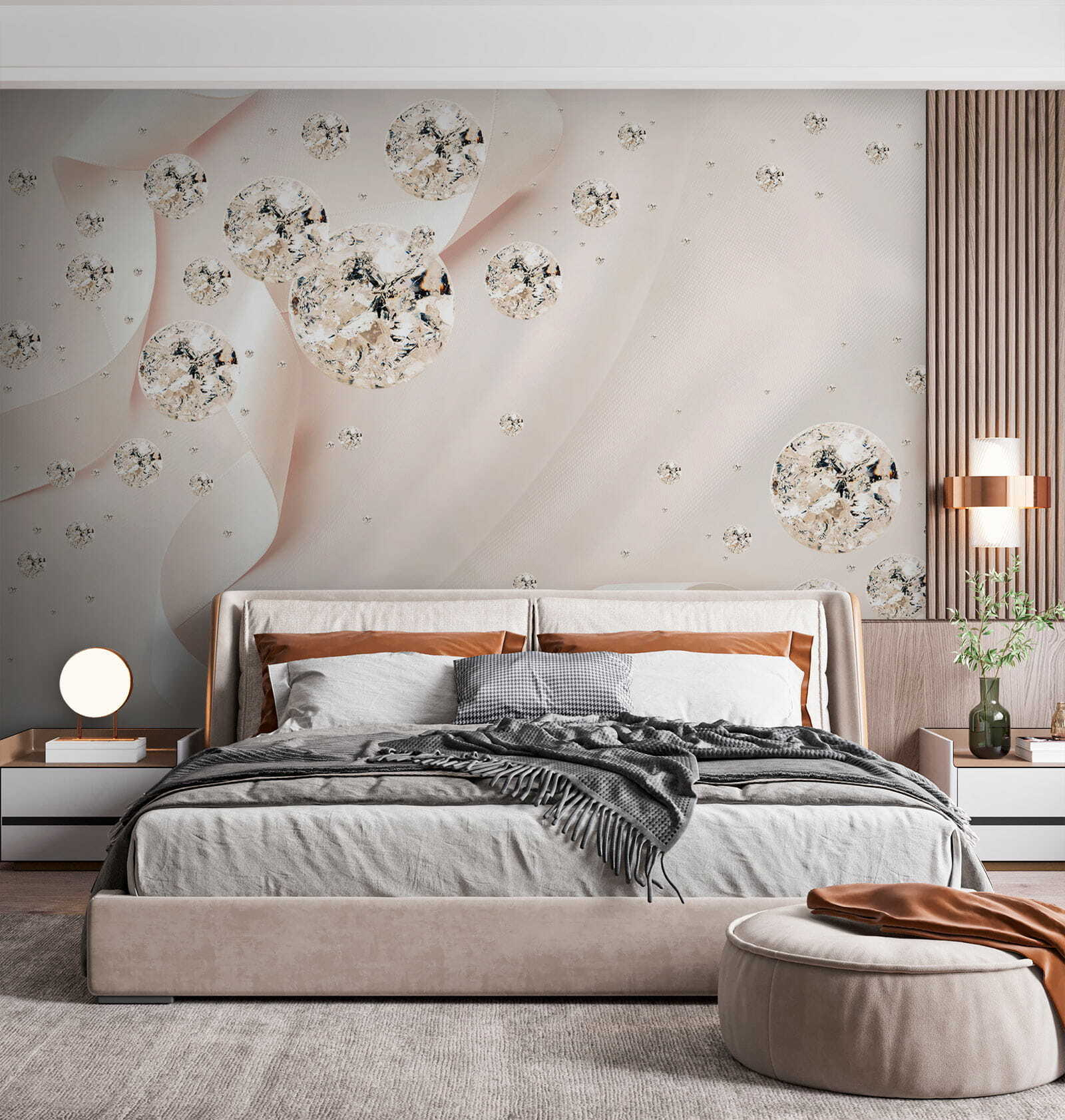 Transformați un perete plictisitor într-o pânză vibrantă cu povești cu acest mural minunat. Imaginați-vă: panglici delicate învârtindu-se în jurul unor globuri hipnotizante, făcând ca orice cameră să se simtă confortabilă și elegantă. Este ca un dans de vis al culorilor blânde și al formelor delicate, perfect pentru momentele în care peretele simplu nu mai este de ajuns. Fie că este vorba de un dormitor senin sau de un spațiu de locuit plin de viață, această pictură murală șoptește farmec și grație – ca o îmbrățișare caldă pentru pereții dvs. Invitați în casa dvs. o notă de încântare care îi va face pe oaspeți să se întrebe cum ați reușit o asemenea magie. Este un decor cu un strop de fler artistic!