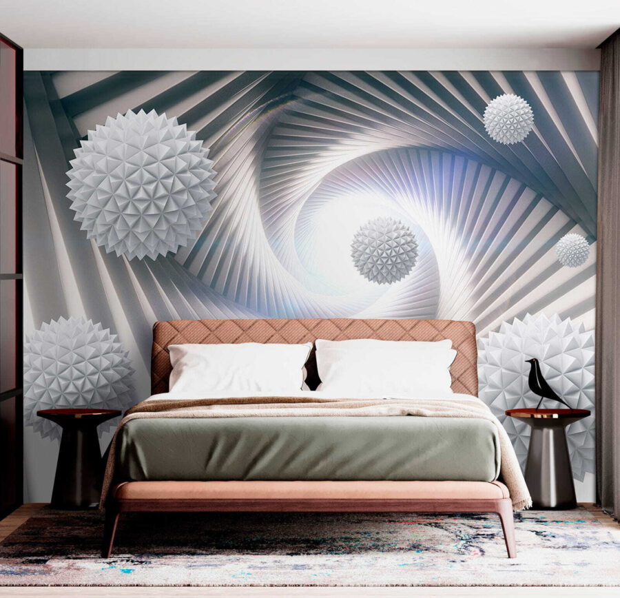 Imaginați-vă că vă relaxați, sorbiți o cafea și vă pierdeți în spirale în timp ce gândurile plutesc înăuntru și în afară. Această pictură murală nu este doar un fundal; ea stârnește conversații și face ca fiecare privire să se simtă ca o mini-aventură. Perfect pentru cei care doresc să adauge un strop de creativitate fără a copleși simțurile. În plus, ar putea inspira un proiect de design sau două. Cine nu vrea asta? Singura provocare? Să decideți care cameră merită o astfel de declarație îndrăzneață!