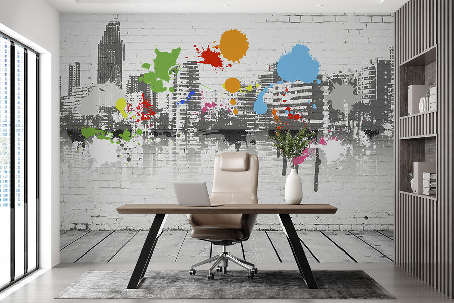 Această pictură murală este o schimbare totală a jocului pentru orice spațiu! Se numește “Blue Blot on a White Brick Wall”, dar face mult mai mult decât să adauge doar o pată de culoare. Imaginați-vă că vă treziți în fiecare zi în fața acestei picturi – stropi strălucitori și jucăuși de albastru, verde și alte culori vibrante pe o siluetă rece a unui peisaj urban. Este ca și cum ai da camerei tale o explozie de energie creativă, fără mizerie!
