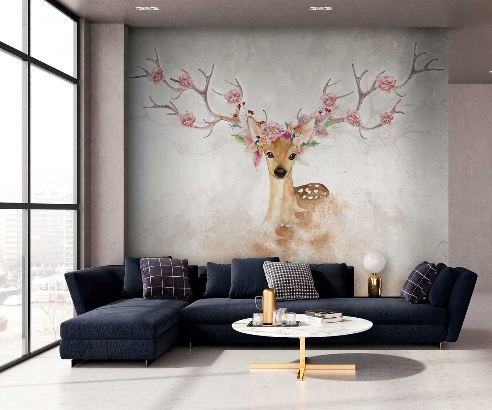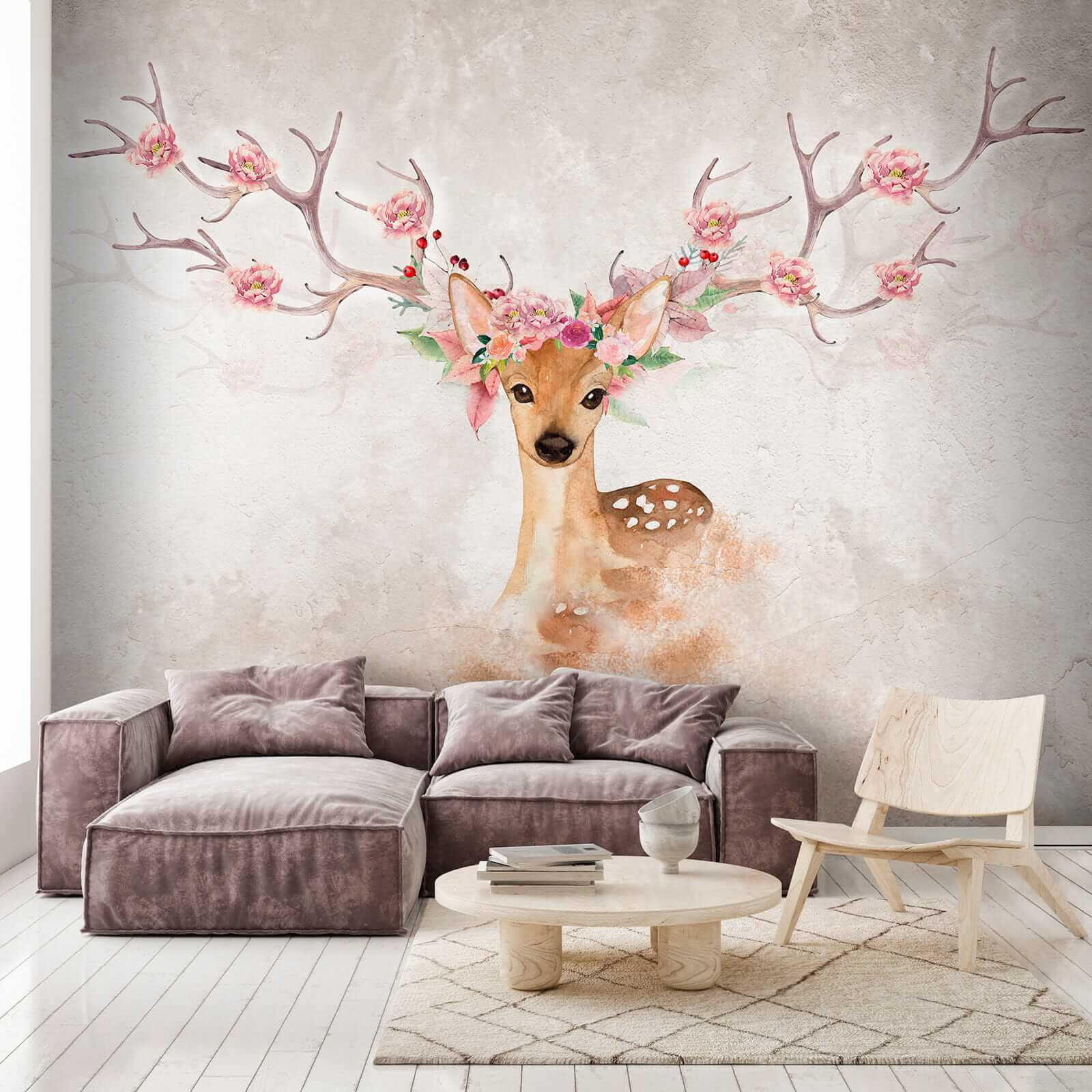 2 recenzii pentru Fototapet Acuarelă a unei căprioare cu flori pe cap