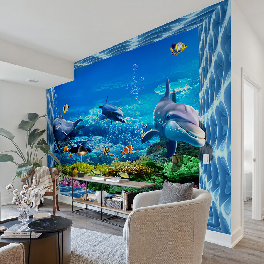 Scufundați-vă într-o lume subacvatică vibrantă cu această pictură murală încântătoare cu delfini care înoată grațios prin ape strălucitoare. Imaginați-vă că vă holbați la aceste creaturi jucăușe, înconjurate de pești colorați și corali luxurianți – este ca și cum ați aduce o felie de paradis oceanic chiar în camera dvs. Perfectă pentru spațiile pentru copii sau pentru oricine este un copil la suflet, această pictură murală stârnește bucurie și curiozitate. Imaginați-vă doar zâmbetele pe care le va aduce în timpul după-amiezelor leneșe sau al întâlnirilor de joacă pline de viață. Nu este doar decor; este o aventură care așteaptă să se întâmple. Cine nu s-ar simți un pic mai vesel privind această scenă stropitoare? Decorați-vă pereții și lăsați distracția să curgă!
