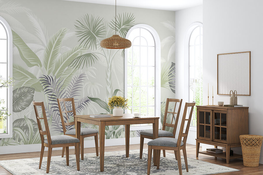 Imaginați-vă că pășiți într-o pădure tropicală liniștitoare de fiecare dată când intrați în cameră. Aceasta este magia “Fototapet Tropical leaves illustration in soft hues”. Cu verdele său blând și frunzișul luxuriant, este ca o mini-vacanță fără a vă părăsi casa. Veți simți un calm imediat pe măsură ce privirea vă plimbă peste frunzele complicate. Este mai mult decât un simplu decor – este o mică evadare.