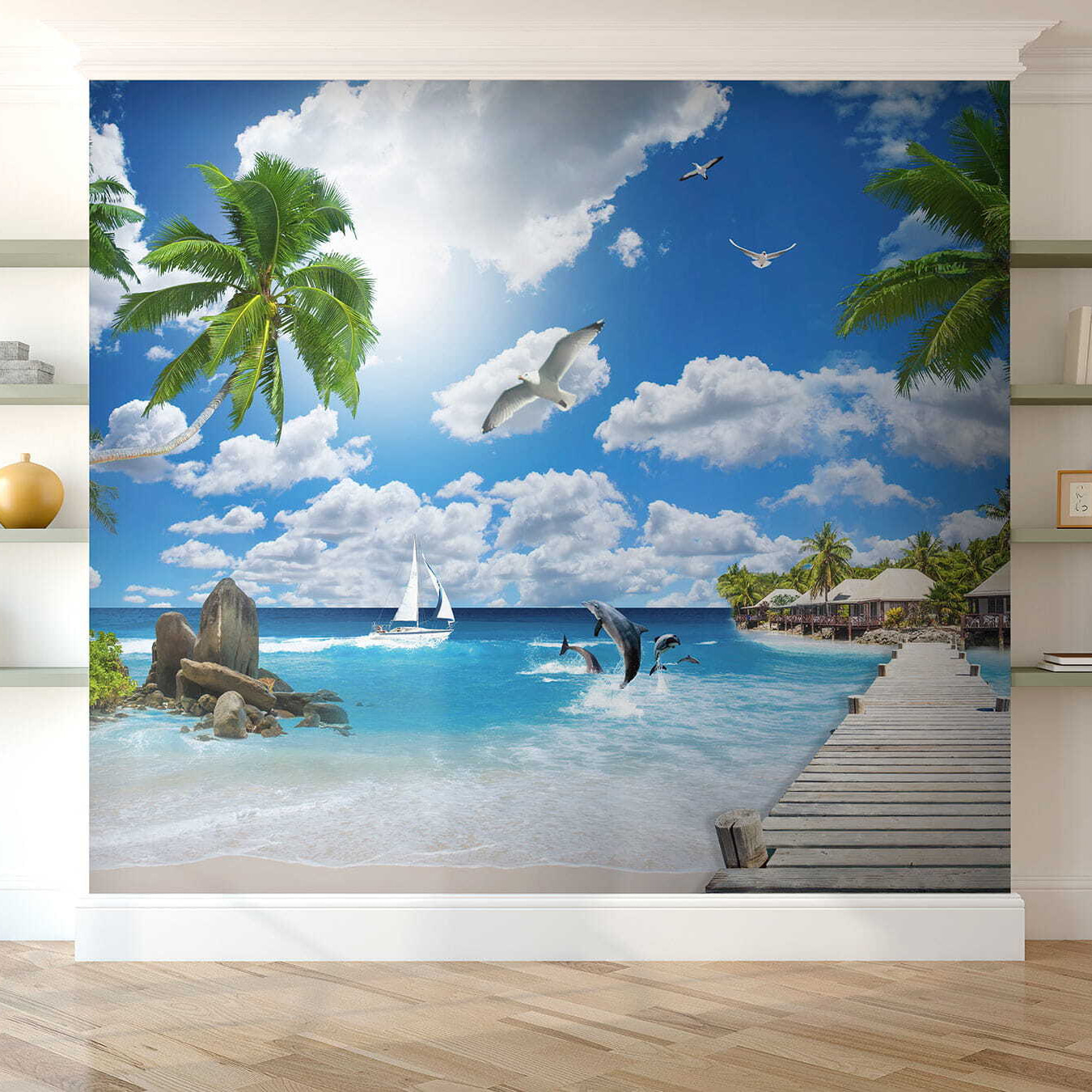 Imaginați-vă că pășiți într-un paradis tropical de fiecare dată când intrați într-o cameră. Această pictură murală uimitoare, “Pasăre zburând pe cer”, vă duce cu gândul la zilele însorite și la briza blândă a oceanului. Albastrul vibrant și verdele luxuriant vă atrag înăuntru, ca o băutură răcoritoare într-o zi fierbinte. Este perfect pentru acel perete care are nevoie de puțină dragoste, creând un sentiment de vară fără sfârșit. Imaginați-vă că vă distrați cu prietenii sau că vă bucurați de un moment de liniște – respirați această vibrație senină. Nu este doar decor; este o invitație de a evada din obișnuit și de a vă scufunda în propria felie de minune a naturii.