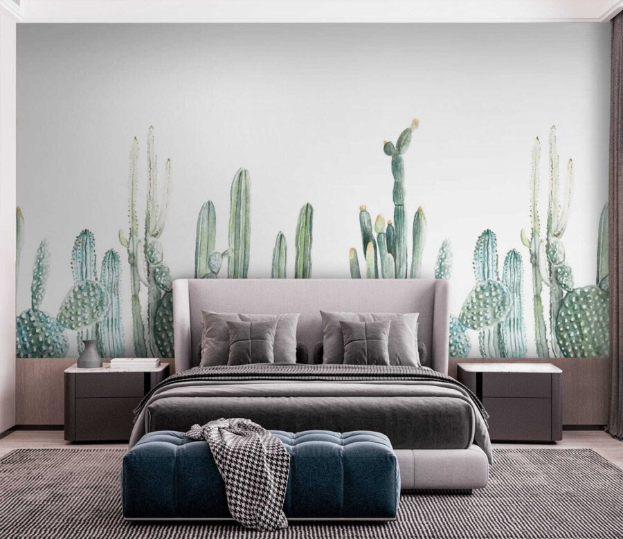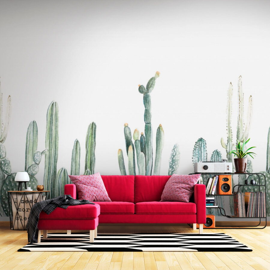Transformați orice cameră într-o oază a deșertului cu această pictură murală încântătoare cu cactuși acuarelați în rânduri fermecătoare. Imaginați-vă: intrați în spațiul dvs. și dintr-o dată este ca o plimbare printr-o grădină senină, fără a fi nevoie de protecție solară. Verdele blând și formele jucăușe aduc un sentiment de calm, ceea ce o face perfectă pentru un colț de lectură confortabil sau o cameră de zi plină de viață. Este aproape ca și cum ai avea un cactus ca animal de companie – fără rutina de îngrijire dificilă. Această pictură murală șoptește căldură și liniște, invitând pe oricine intră să se relaxeze și să se relaxeze. Așa că dați-i drumul, lăsați pereții dvs. să respire viață!