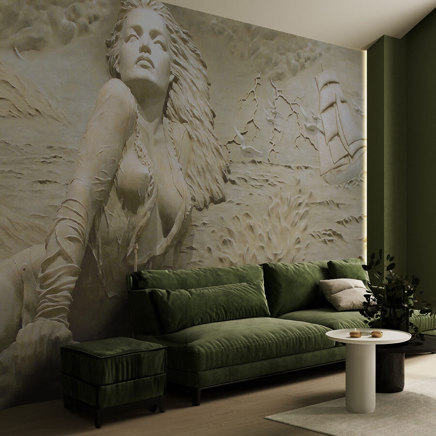 Ți-ai imaginat vreodată că ai o capodoperă chiar pe perete? Această pictură murală a unei femei statuare este demnă de leșinat – aproape ca o scenă desprinsă direct dintr-o aventură epică. Detaliile complicate aduc vibrații atât de dramatice, încât s-ar putea să simțiți briza sărată a mării de fiecare dată când treceți pe lângă ea. Perfect pentru oricine dorește să adauge o scânteie de farmec clasic cu o notă modernă.