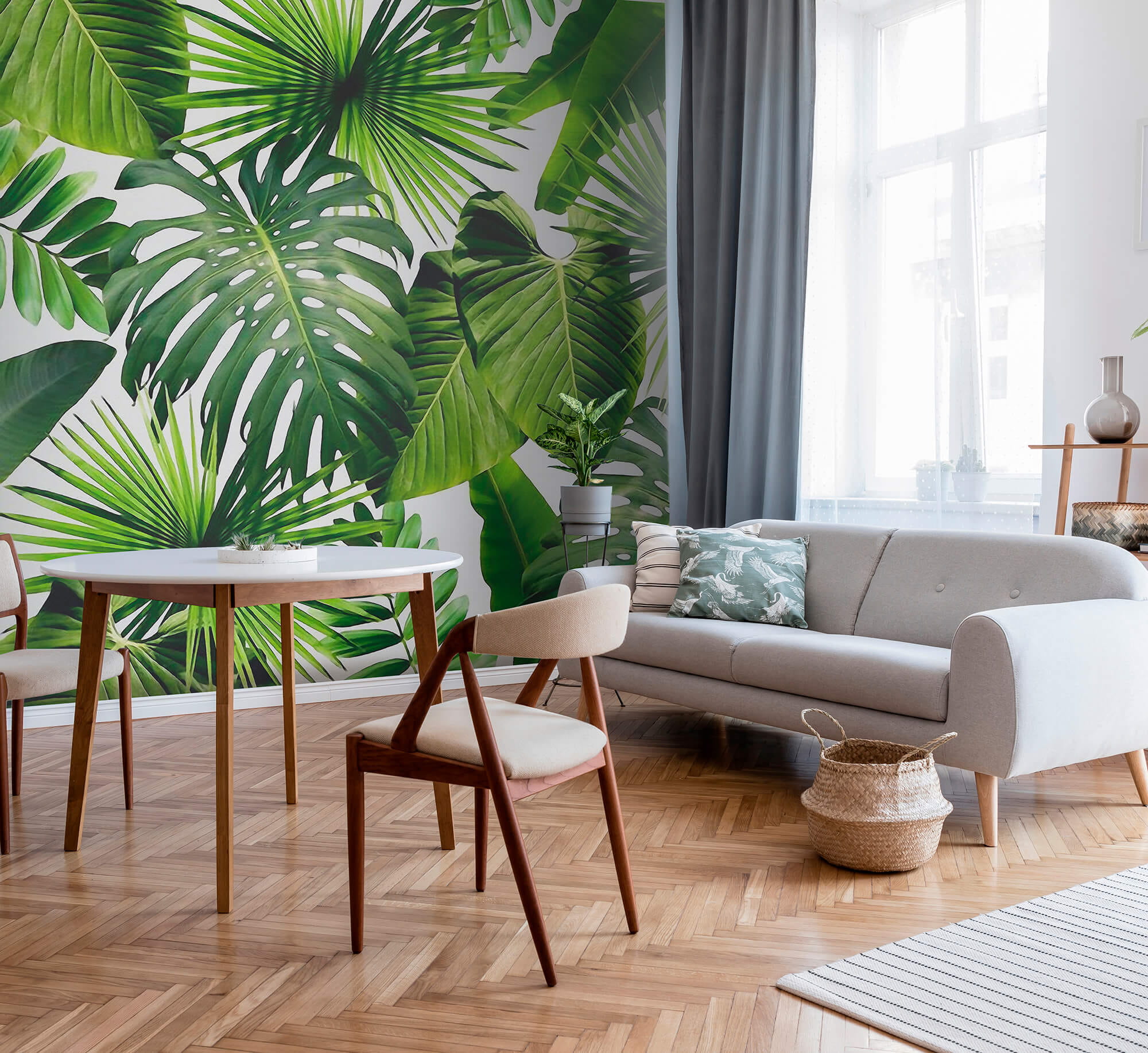 Transformați-vă spațiul cu această pictură murală vibrantă cu frunze tropicale, în care verdele luxuriant dansează pe pereții dvs. ca o mini-flortă tropicală chiar la dvs. acasă. Imaginați-vă că pășiți într-un refugiu senin în fiecare dimineață, unde aerul este mai proaspăt și inspirația curge ca un palmier care se leagănă ușor. Este perfectă pentru a înveseli un colțișor confortabil sau pentru a adăuga un strop de personalitate unui birou – cine nu dorește să se bucure de un aer de plajă în timp ce lucrează?