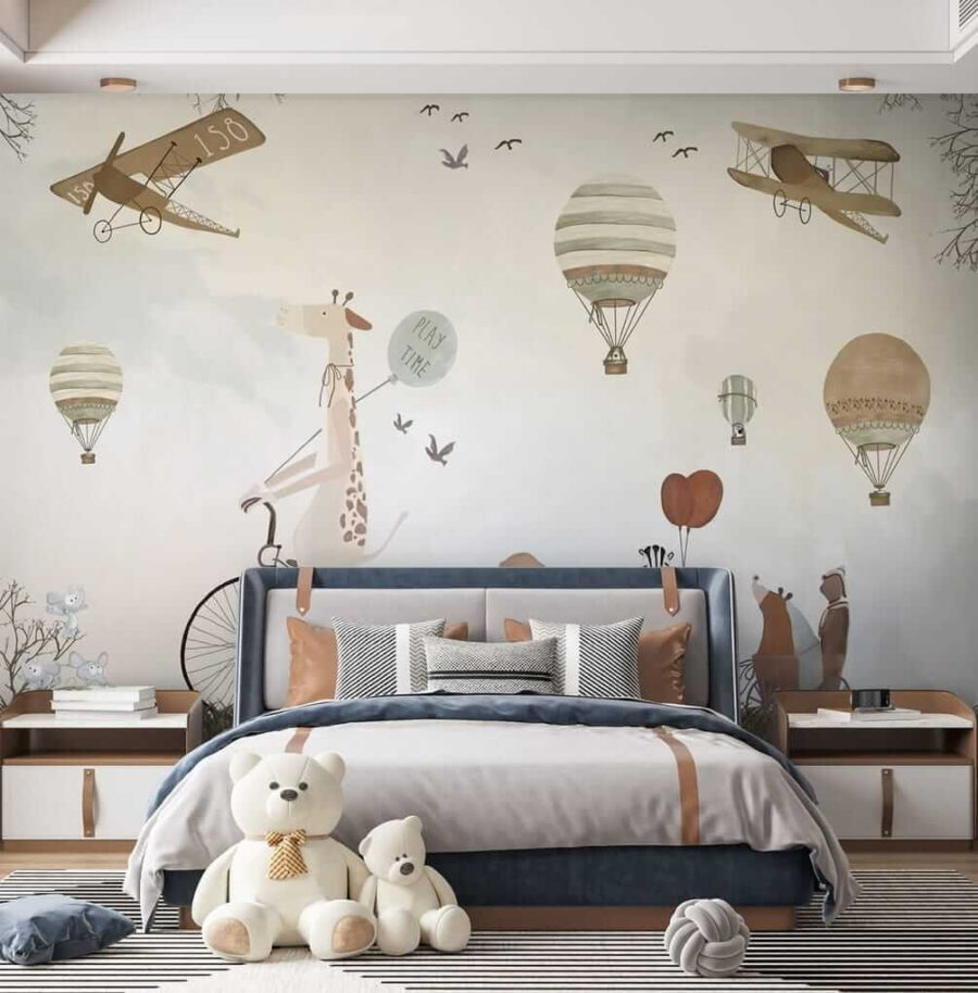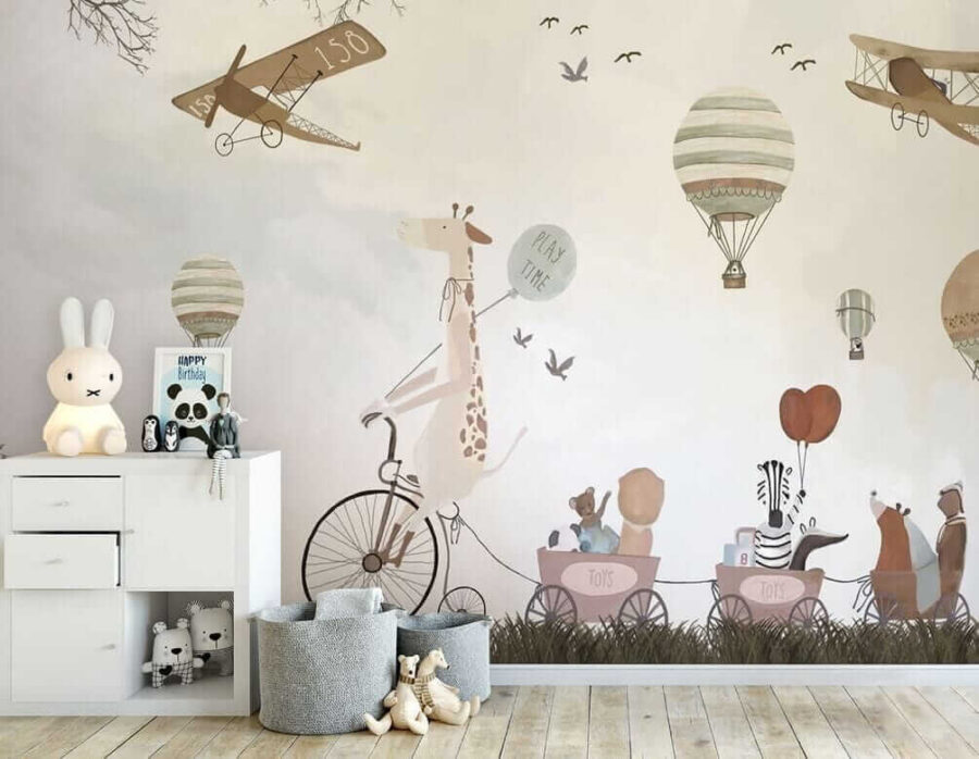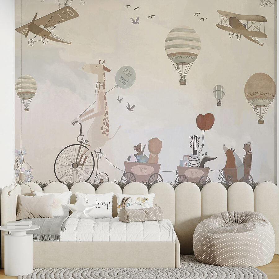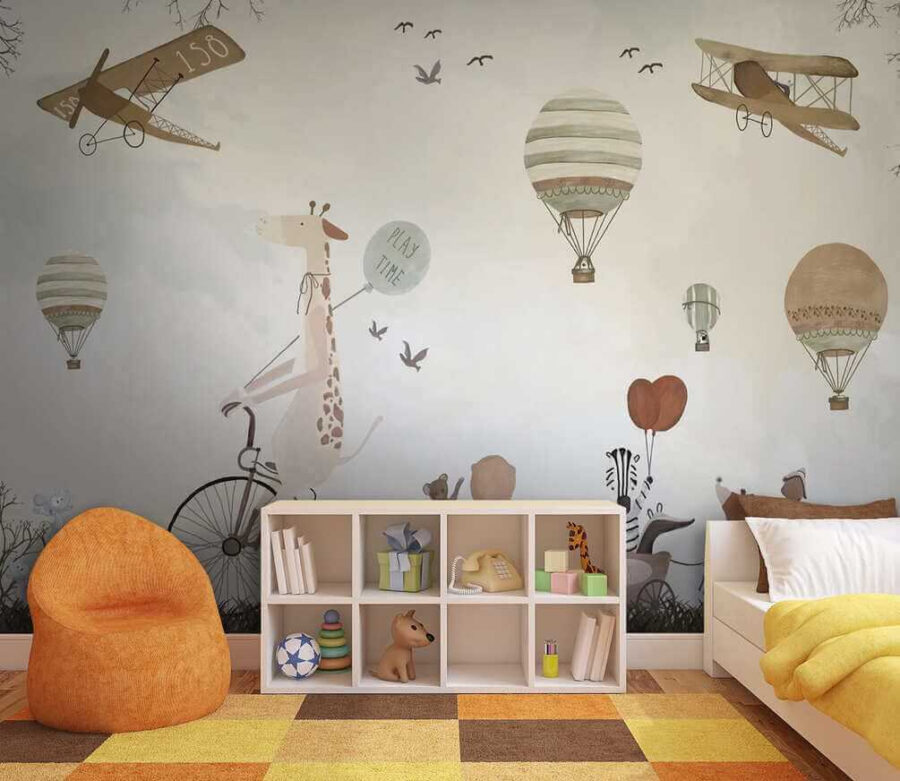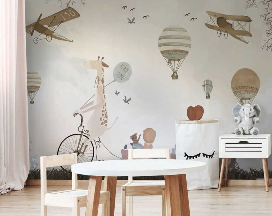 Transformați camera unui copil într-o aventură capricioasă cu acest fermecător balon mural cu aer cald! Imaginați-vă o girafă chicotind pe o bicicletă, împărtășind vibrații “de joacă” cu prietenii adorabili de animale – este ca o carte de povești devenită realitate.