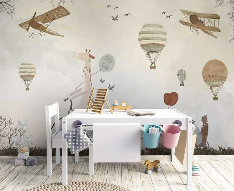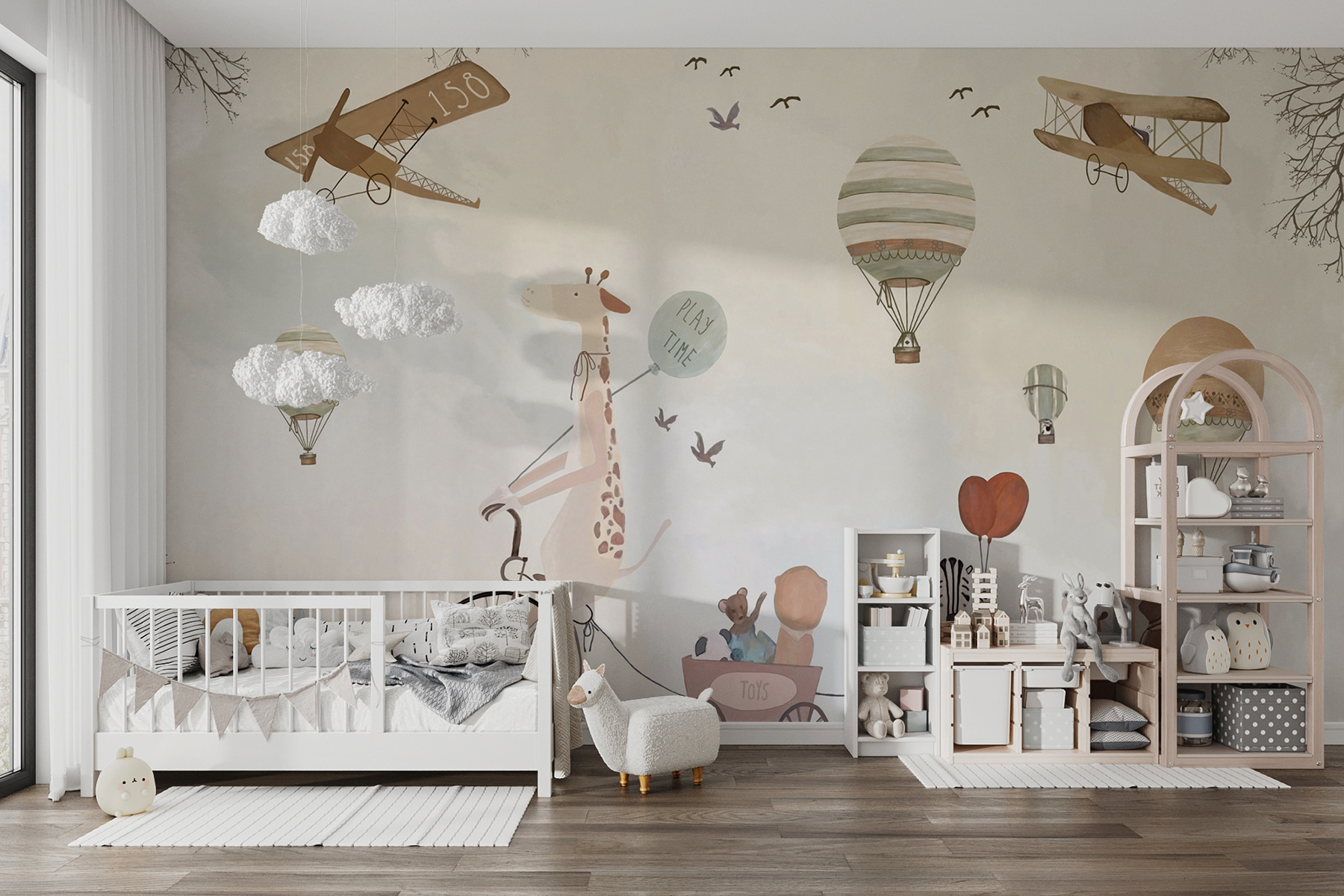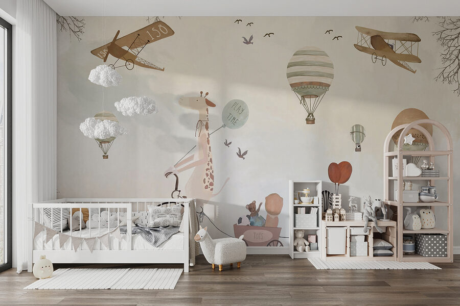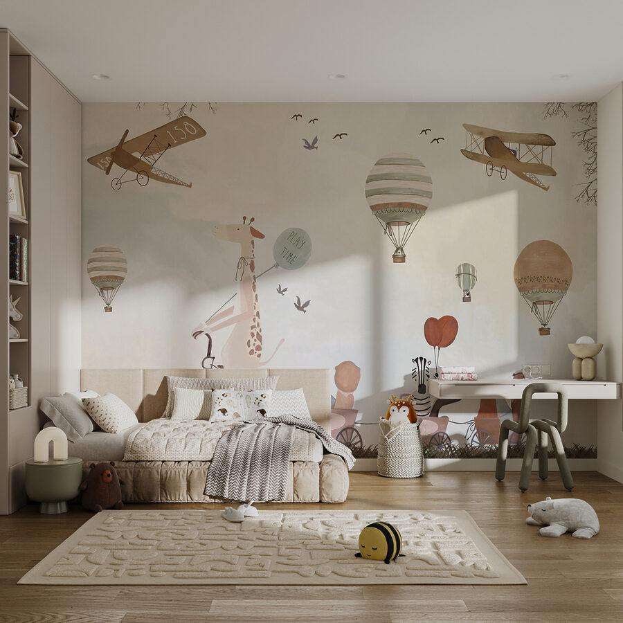Fiecare privire va stârni imaginația, transportându-i pe cei mici în visuri cu ochii deschiși în care se înalță deasupra norilor. Culorile calde creează o atmosferă confortabilă, perfectă pentru colțuri confortabile de lectură sau zone de joacă jucăușe. Fie că este vorba de o petrecere aniversară sau de o după-amiază liniștită, această pictură murală luminează orice spațiu, făcându-l să pară puțin mai magic. Cine ar fi crezut că decorarea se poate simți ca o aventură plină de bucurie?