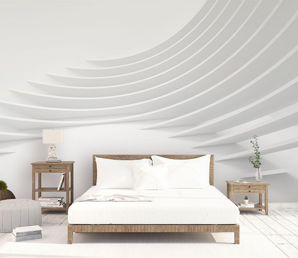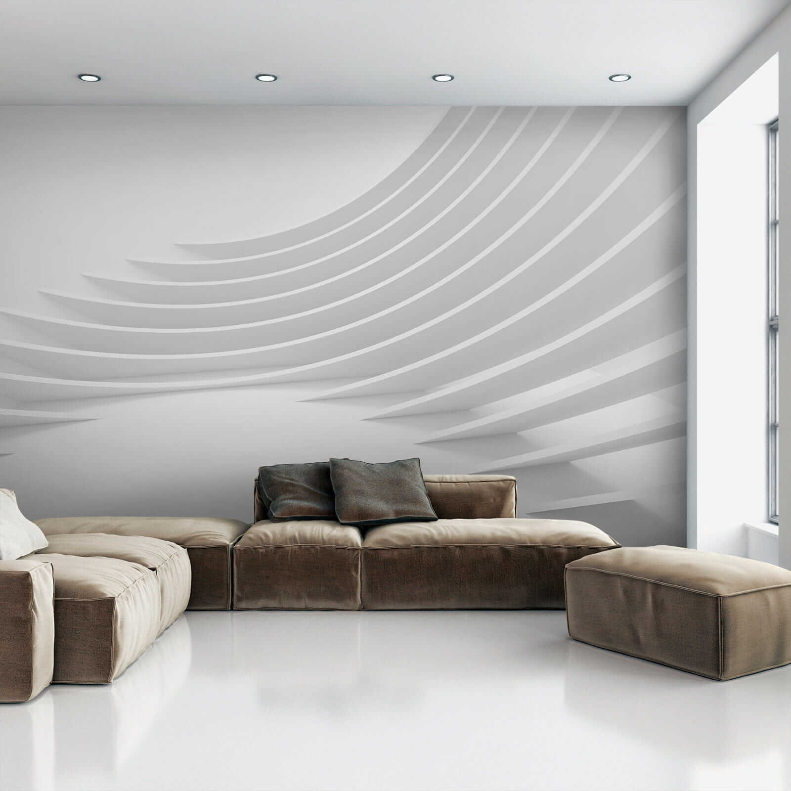 Imaginați-vă că intrați într-o cameră și simțiți că pășiți într-o galerie de artă senină, futuristă… Acest mural “White Shelf in a Room” este magie pură. Seamănă cu acele desene abstracte care te fac să te întrebi “Uau, ce este asta?!”, dar în cel mai bun mod posibil. Elegant și modern, are aceste linii curbate care par să se întindă la infinit – perfect pentru a da un upgrade major oricărui perete plictisitor.