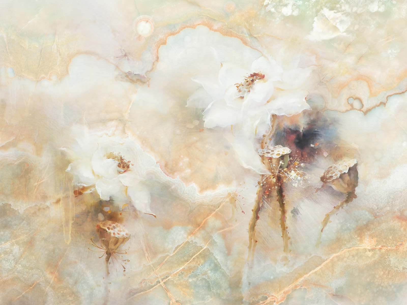 Transform your space with this dreamy wall mural featuring softly painted flowers on a stunning marble backdrop. Imagine walking into a room where the delicate hues of white petals dance against warm, earthy tones, creating a vibe that’s almost like stepping into a serene garden. It’s perfect for those cozy corners or maybe a dining area that needs a little pick-me-up.