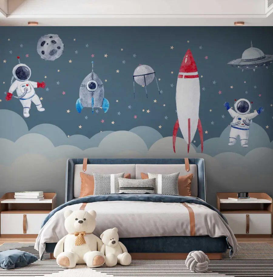 Imaginează-ți asta: o seară confortabilă, cu luminile stinse, iar micuțul tău privește această pictură murală capricioasă cu astronauți în acuarelă. Este ca o poveste desprinsă dintr-o carte de povești de vis – mici astronauți plutitori printre stele, făcând ora de culcare magică… și poate inspirând viitoare aventuri spațiale! Această pictură murală nu este doar artă; este un bilet către o altă lume. Perfectă pentru camera oricărui copil, aduce acea vibrație jucăușă, dar senină. Este plină de farmec, cu nuanțele sale blânde și personajele vesele, transformând orice perete într-o pânză a imaginației. Vă va fi imposibil să nu zâmbiți de fiecare dată când o veți vedea!