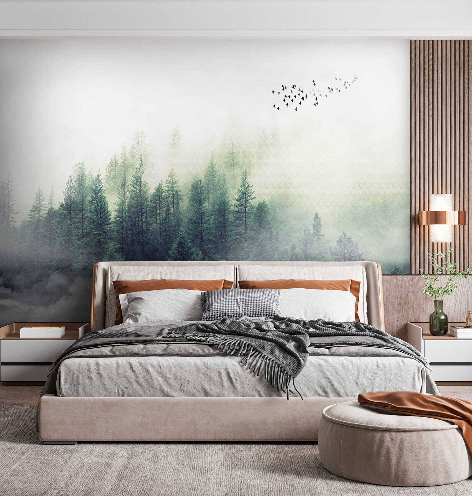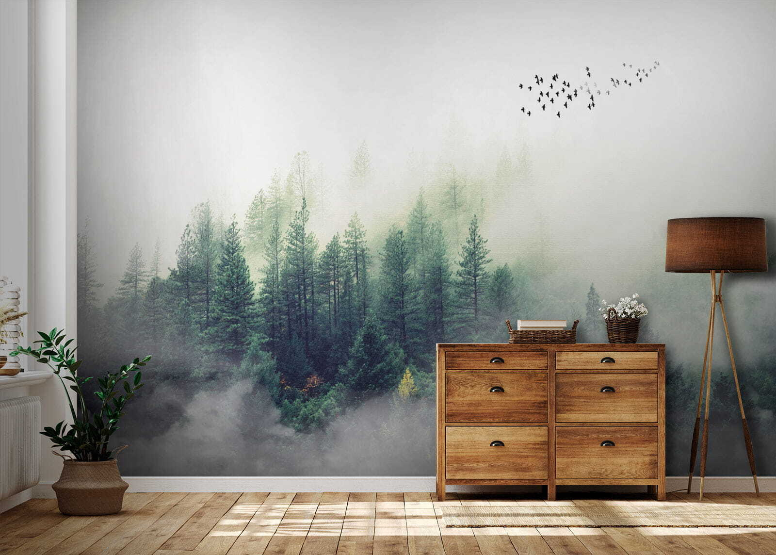 Imaginați-vă că priviți o pădure cețoasă în fiecare dimineață – oh, liniștea! Această pictură murală, “Blurry image of a person’s face” (Imagine neclară a feței unei persoane), este ca și cum ai aduce o atmosferă de cabană confortabilă chiar în sufrageria ta. Pădurea pare atât de magică, aproape ca și cum ai putea intra direct în verdele senin și să te pierzi în natură. În plus, păsările care zboară în depărtare adaugă o notă de fantezie.