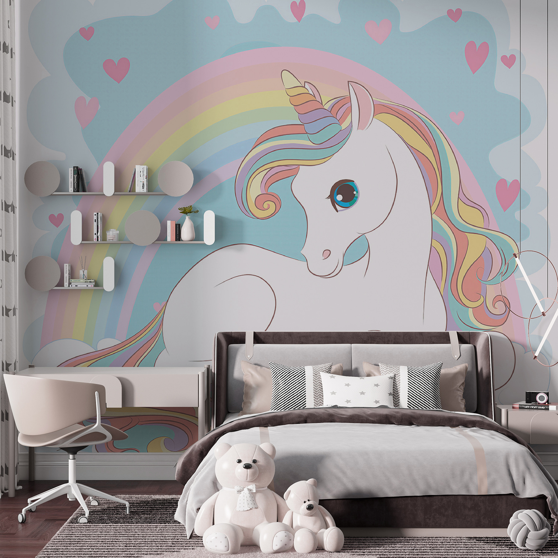 Imaginează-ți că te trezești într-un tărâm de vis, magic, în fiecare dimineață – da, asta este ceea ce face acest “Fototapet Pink heart on a blue background”! Plin de o paletă pastel dulce, acesta prezintă un unicorn adorabil cuibărit pe nori pufoși cu inimi plutind în jur – total demn de Pinterest, nu-i așa? Perfect pentru a adăuga un strop de fantezie camerei unui copil, mai ales dacă unicornii sunt o chestie în casa ta. Este ca și cum ai păși într-un basm care stârnește tot felul de bucurii și chicoteli. Fericire pură înfășurată într-o pictură murală! Ideală pentru a crea un spațiu jucăuș și reconfortant, în care imaginația micuților poate da frâu liber curcubeelor și inimilor. Așadar, instalați această magie pe perete – lăsați pereții să spună o poveste proprie!