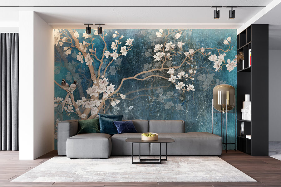 Ați visat vreodată să aduceți o atingere a frumuseții naturii în interior? Această pictură murală “Floare albă pe fundal albastru” este ca o gură de aer proaspăt pentru spațiul dumneavoastră! Imaginați-vă flori albe delicate care cad în cascadă pe un fundal albastru de vis, cu păsări fermecătoare cocoțate atât de grațios. Este ca și cum ai avea propria ta grădină secretă, fără a fi nevoie să o uzi!