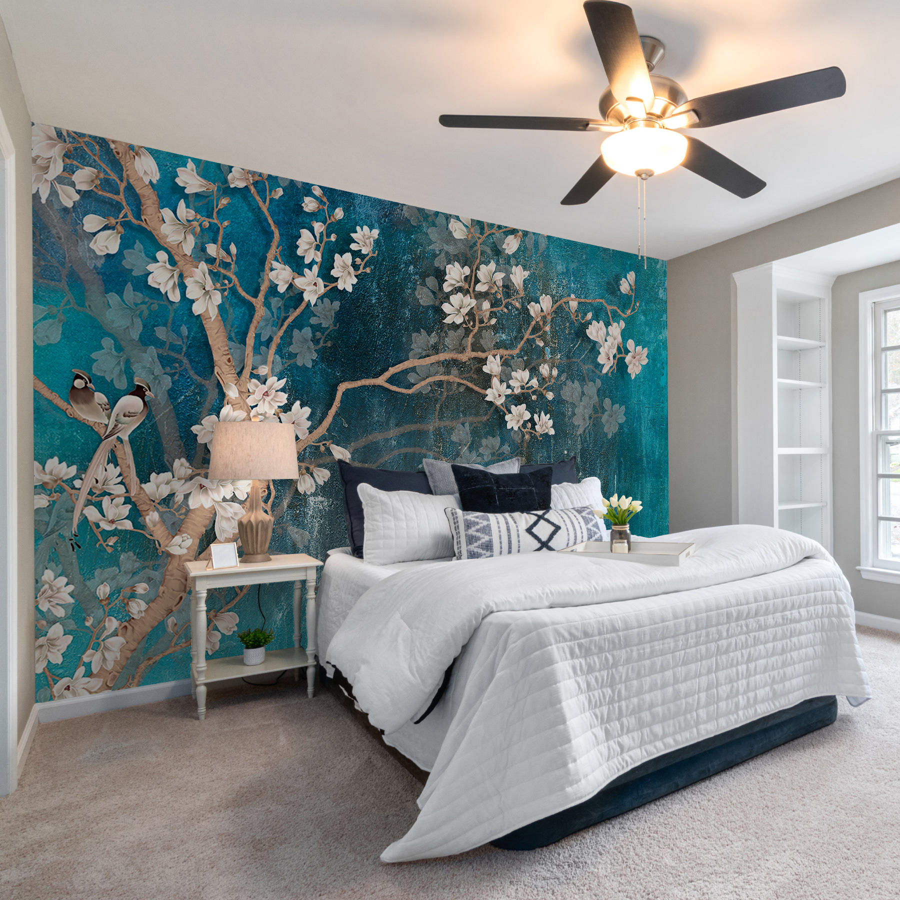 Ați visat vreodată să aduceți o atingere a frumuseții naturii în interior? Această pictură murală “Floare albă pe fundal albastru” este ca o gură de aer proaspăt pentru spațiul dumneavoastră! Imaginați-vă flori albe delicate care cad în cascadă pe un fundal albastru de vis, cu păsări fermecătoare cocoțate atât de grațios. Este ca și cum ai avea propria ta grădină secretă, fără a fi nevoie să o uzi!