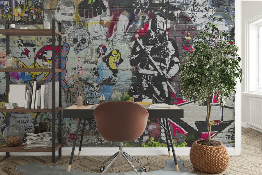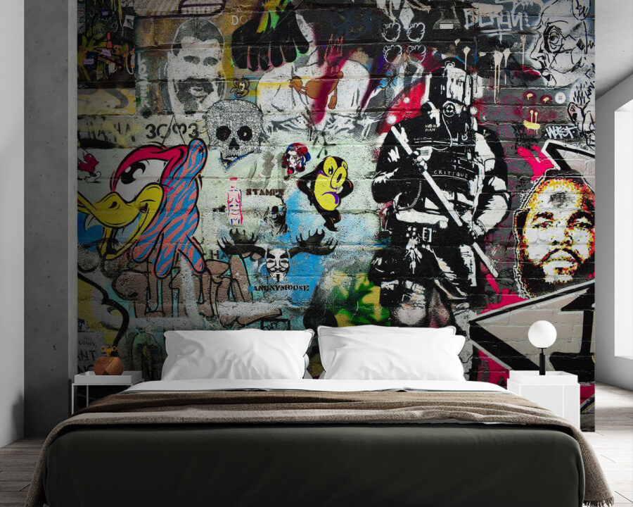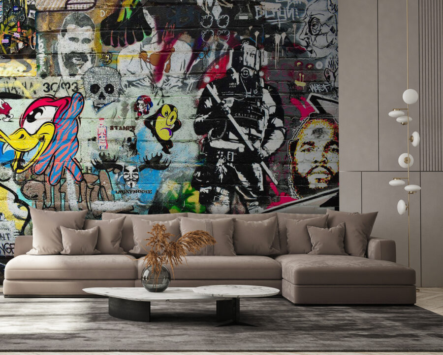 Ai vrut vreodată să te simți ca și cum ai locui într-un loft artistic din oraș? Această pictură murală “Bărbat cu barbă și mustață pictat pe un perete de cărămidă” aduce acel vibe direct în spațiul tău. Nu este doar un perete – este o explozie de personalitate, o declarație îndrăzneață, un starter de conversație. Imaginați-vă cum vă sorbiți cafeaua de dimineață, lăsându-vă ochii să se plimbe peste detaliile complicate și personajele ciudate. Este ca și cum ai avea o mini galerie de artă chiar la tine acasă. În plus, o pictură murală pe un perete de cărămidă are ceva atât de mișto – adaugă o notă de istorie și grunge. Perfect pentru oricine iubește un pic de margine și creativitate în decorul său! Așa că dă-i drumul, lasă-ți pereții să vorbească urban chic!