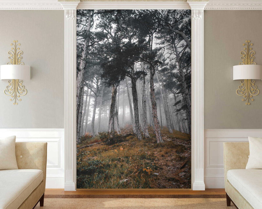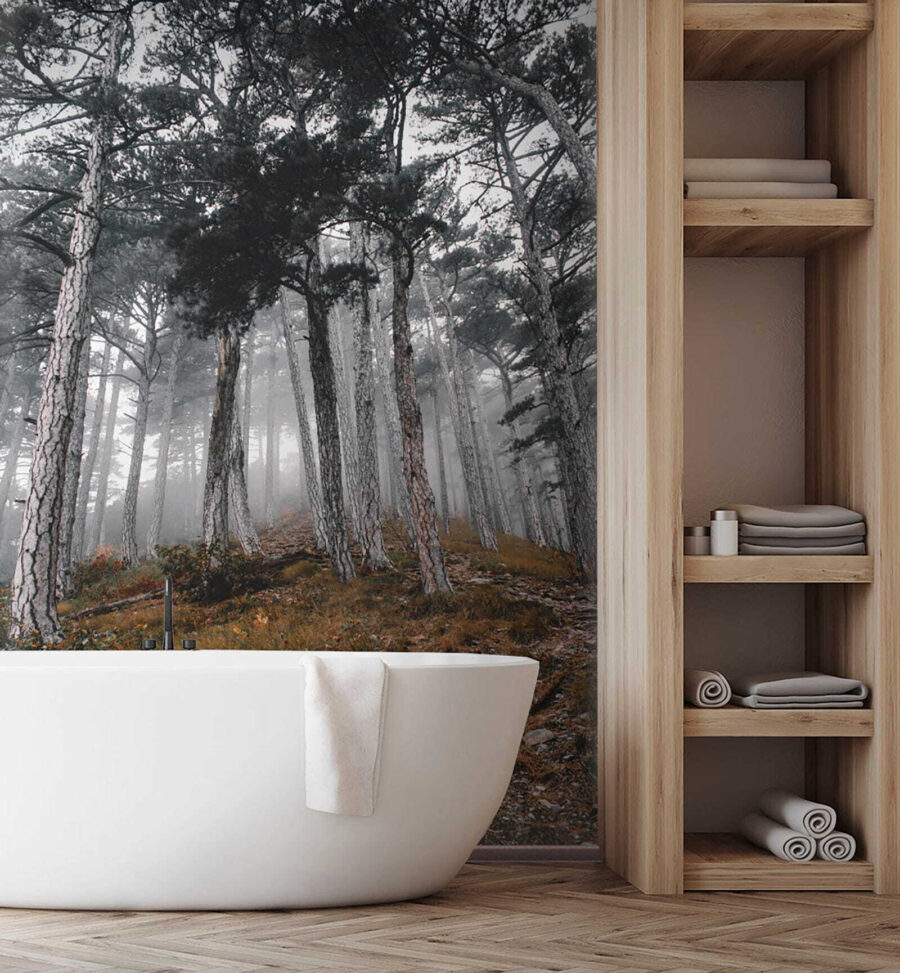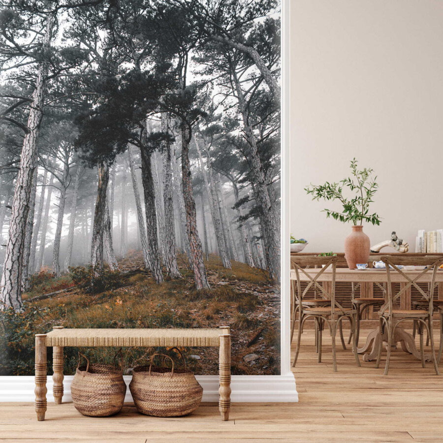Fototapet Pădure cu copaci în ceață Fototapet Pădure cu copaci în ceață