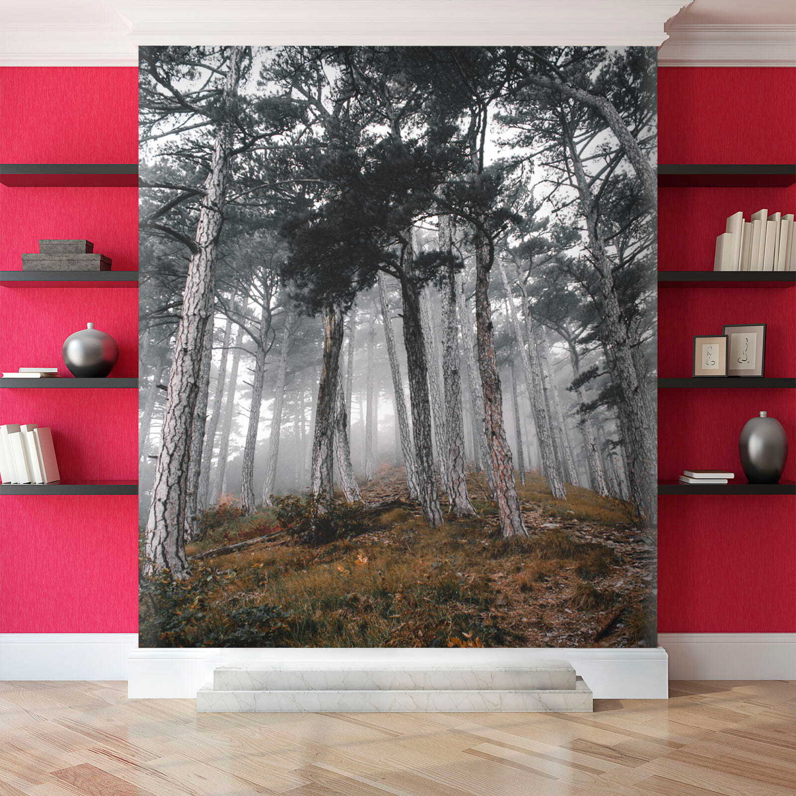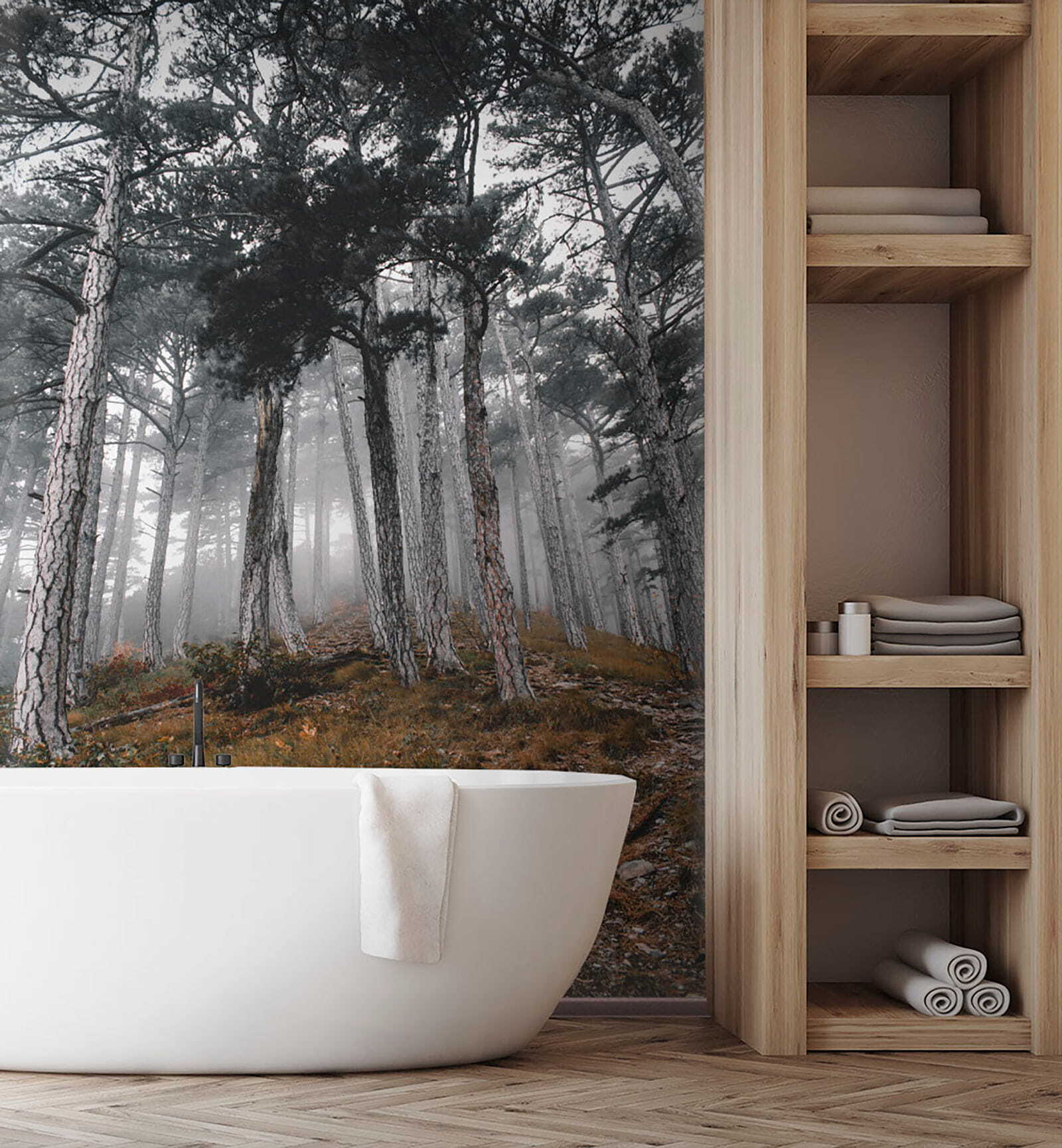 Imagine stepping into a tranquil forest, where trees stretch high and the fog whispers secrets of nature. This “Forest with Trees in the Fog” mural transforms your space into a serene escape. It captures that dreamy moment when sunlight dances through the mist, creating soft shadows and a sense of wonder. Picture curling up with a book or sipping coffee as this peaceful scene envelops you—it’s like bringing the outdoors inside without the bugs! Perfect for anyone wanting to add a touch of calm and mystery to their walls. So, why not let your imagination roam amidst these foggy trees? It’s a conversation starter, a reminder to breathe, and a little slice of forest magic, all in one!