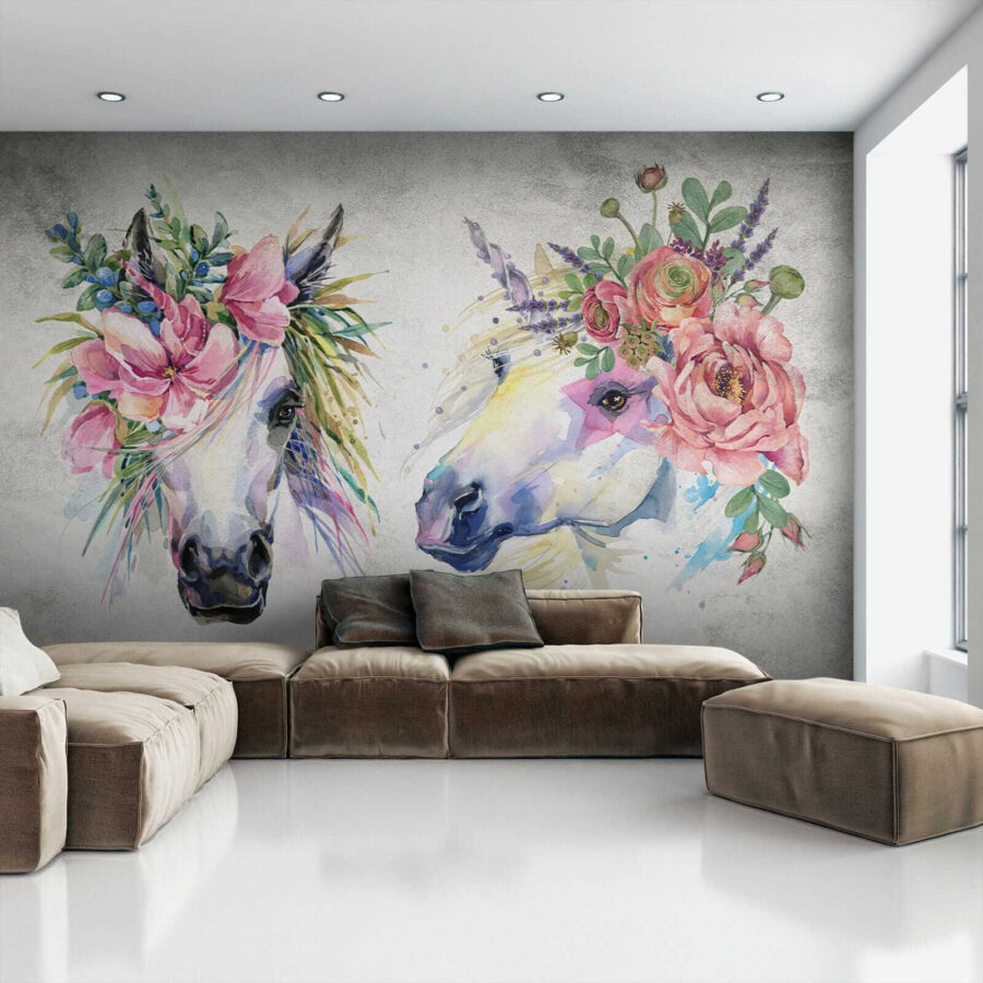 Imaginați-vă intrând într-o cameră și fiind întâmpinați de acești cai uimitori împodobiți cu coroane florale! Această pictură murală vibrantă aduce o explozie de culoare și fantezie în orice spațiu – perfectă pentru camera unui copil, o cameră pentru copii sau chiar un studio creativ. Senzația de acuarelă este pur și simplu de vis, aproape ca și cum ați fi pășit într-o grădină de basm. Florile delicate și ochii expresivi ai cailor adaugă o notă de magie și seninătate greu de rezistat.