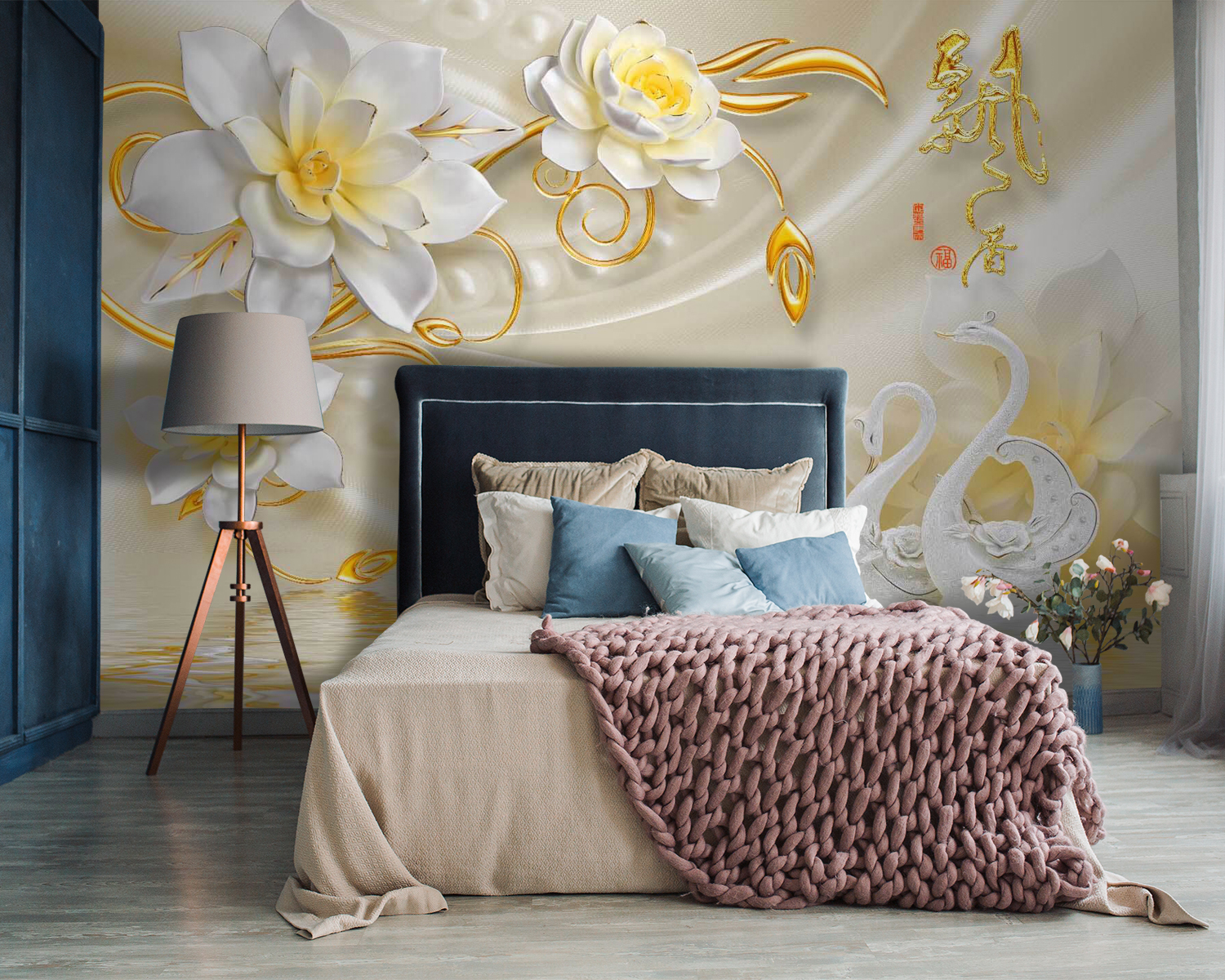 Transformați orice cameră într-o evadare senină cu această pictură murală încântătoare cu lebede încântătoare și flori delicate. Imaginați-vă că pășiți într-o grădină liniștită în care lebedele alunecă grațios pe un iaz strălucitor – sună de vis, nu-i așa? Acest design jucăuș, perfect pentru camerele copiilor sau pentru colțurile confortabile, aduce o notă de natură în interior. Fiecare privire aruncată asupra picturii murale poate evoca sentimente de pace și bucurie, ceea ce o face un fundal ideal pentru joacă sau lectură liniștită. Cu flori care înfloresc frumos, este greu să nu zâmbești! Cine nu și-ar dori un pic din această magie în casa sa?