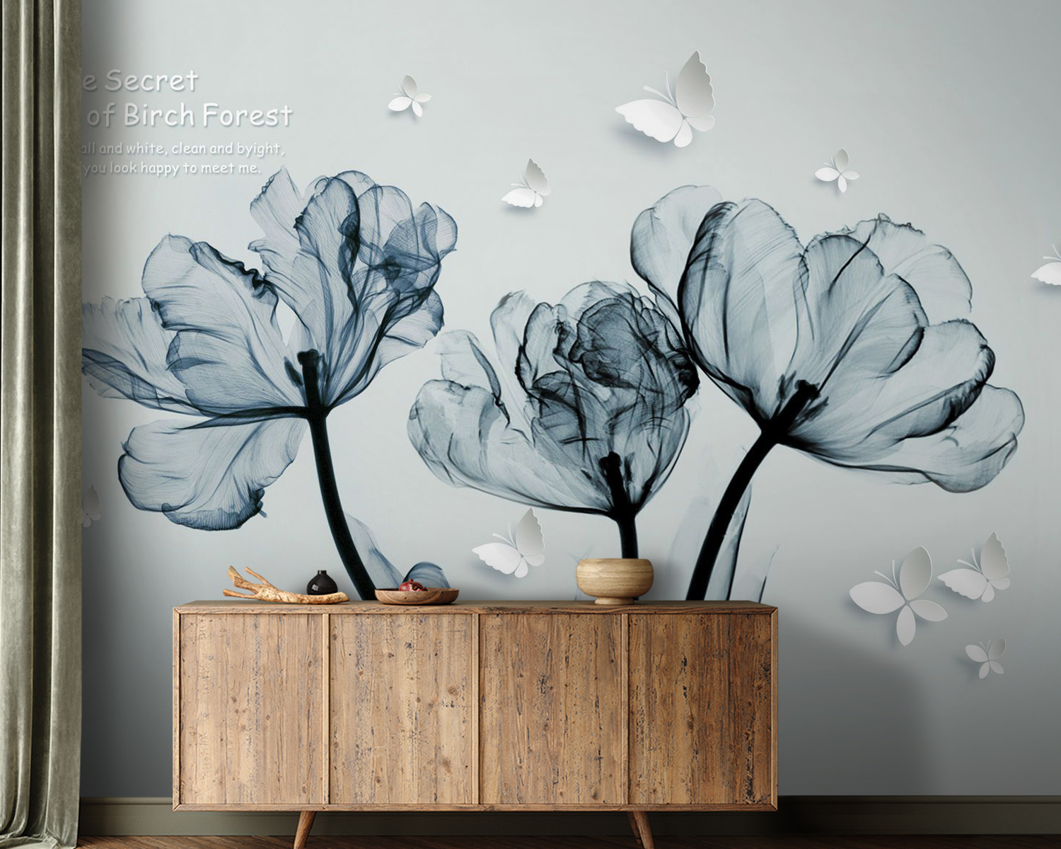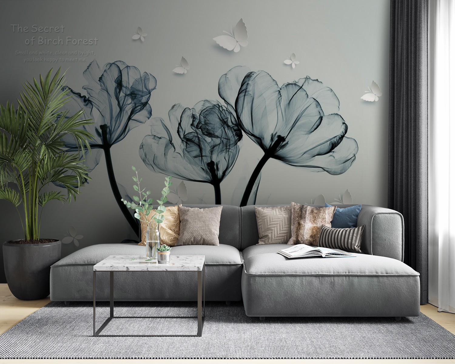 Transformați-vă spațiul cu acest superb mural alb-negru cu flori delicate. Este ca și cum ați invita o grădină liniștită chiar în casa dvs., fără stropitoarea și insectele enervante! Imaginați-vă că vă treziți în fiecare dimineață înconjurați de aceste flori grațioase – un vis, nu-i așa? Atmosfera delicată, de acuarelă, adaugă un plus de eleganță, făcând orice cameră să pară instantaneu mai șic. În plus, fluturii aceia capricioși? Te vor face să-ți imaginezi fluturi zburând în jurul tău într-o după-amiază leneșă. Este o artă care șoptește eleganță, păstrând în același timp lucrurile simple și răcoritoare. Perfect pentru peretele accent sau poate chiar pentru holul de la intrare – pentru că cine nu ar vrea să-și impresioneze oaspeții încă de la început? Acest mural nu este doar o decorațiune, ci o experiență care așteaptă să se dezvăluie.