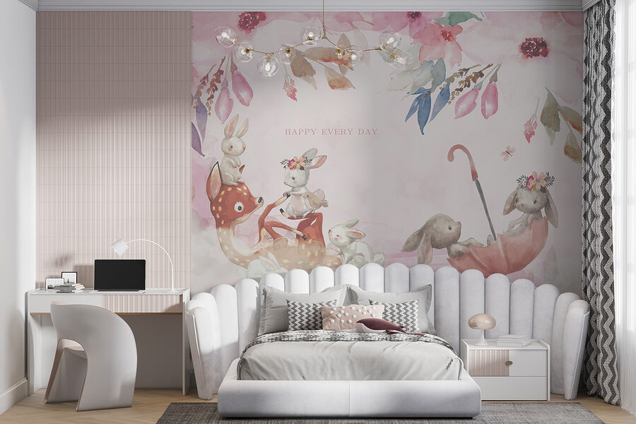 Vrei să faci camera copilului tău absolut magică? Uitați-vă la această pictură murală adorabilă “Iepuraș cu flori”! Perfectă pentru camera unei fiice, aceasta prezintă cel mai drăguț iepuraș cu flori pe cap – ca o mică prințesă a pădurii. Imaginați-vă acest lucru: culorile pastelate blânde creează o atmosferă visătoare și liniștitoare, făcând fiecare poveste de culcare puțin mai capricioasă. Imaginează-ți ochii micuțului tău luminându-se de fiecare dată când îl vede… Magie pură! Nu este doar o pictură murală; este o invitație la o lume a imaginației și a râsetelor. Și hei, cine nu și-ar dori un prieten iepuraș care să vegheze asupra lui în timp ce se joacă și visează? Acest design dulce și delicat va aduce cu siguranță căldură și bucurie în orice spațiu. În plus, este un fundal minunat pentru toate acele fotografii de familie pe care le veți prețui pentru totdeauna. Nu-l puteți vedea? Atât de fermecător… atât de perfect!