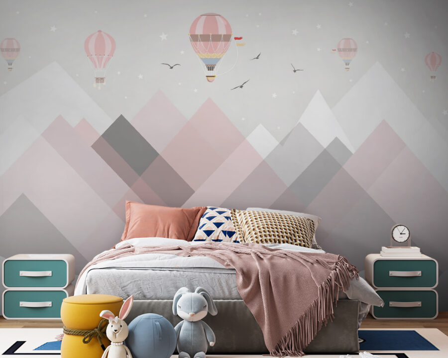 Îmbunătățiți-vă spațiul cu acest mural încântător, care prezintă baloane cu aer cald care plutesc grațios peste munți capricioși. Imaginați-vă că intrați într-o cameră care pare instantaneu mai luminoasă și mai veselă. Culorile pastelate delicate aduc o căldură blândă, perfectă pentru un colț de lectură confortabil sau o cameră jucăușă pentru copii. Este ca și cum ați avea un perete de mini-vacanță unde cerul este limita – literalmente! Fiecare privire poate stârni un vis cu ochii deschiși despre aventuri îndepărtate. Păsările zboară prin aer, adăugând un strop de viață peisajului senin. Acest mural nu este doar un decor, ci o invitație la visare și evadare, fiind un plus încântător pentru orice perete!
