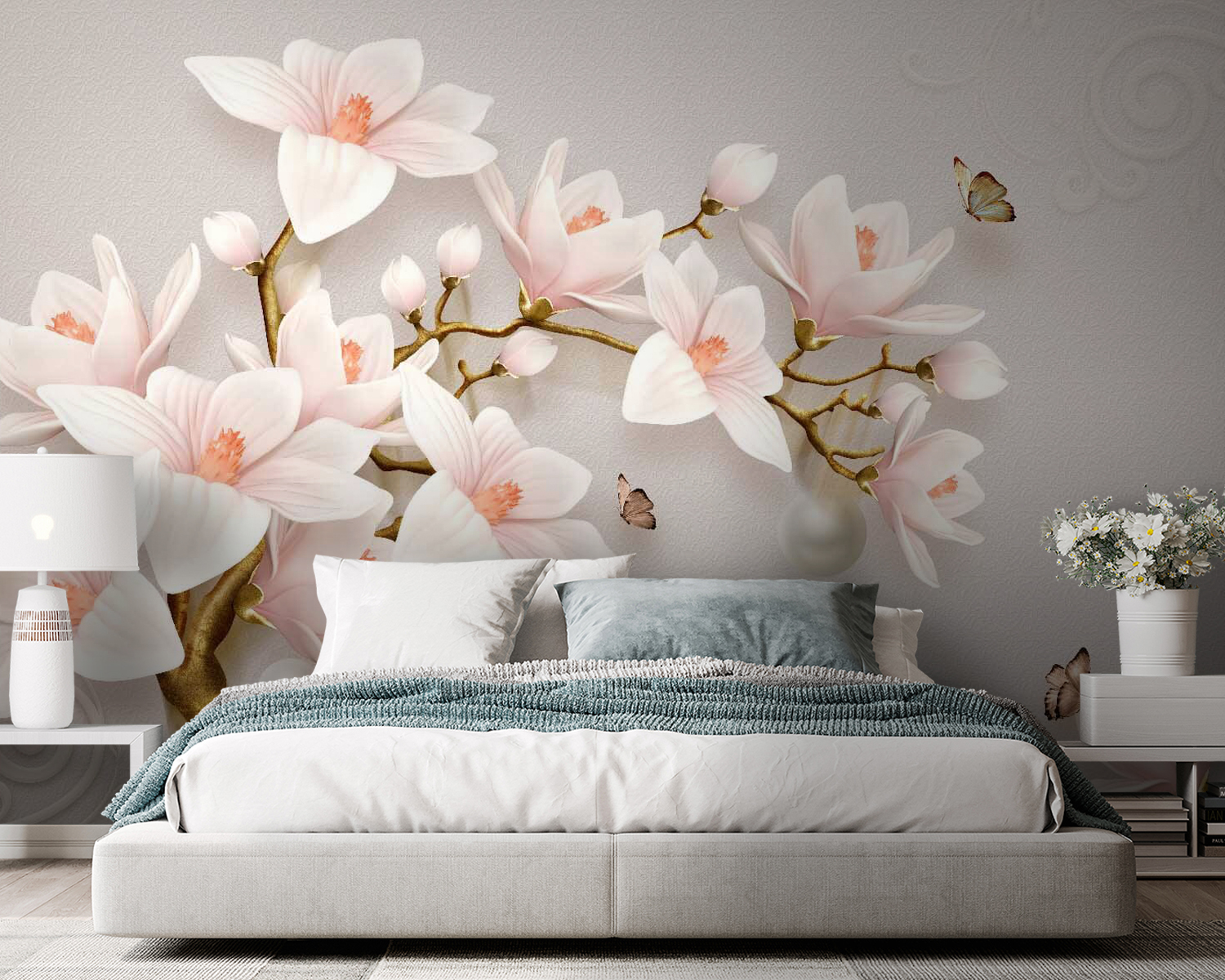 Transform your space with these enchanting wall murals featuring delicate blossoms in soft hues. Imagine stepping into a room where floral whispers and gentle colors create an atmosphere that’s as soothing as a warm cup of tea. Perfect for those cozy evenings or even a spontaneous dance party in your living room—who doesn’t love a little dance break? The lovely intricacies of the blooms float gracefully around, almost inviting butterflies to join the fun. This mural doesn’t just decorate, it tells a story, wraps you in calm, and lets your walls bloom with life. Perfect for anyone wanting a bit of nature indoors, or just a touch of something pretty.