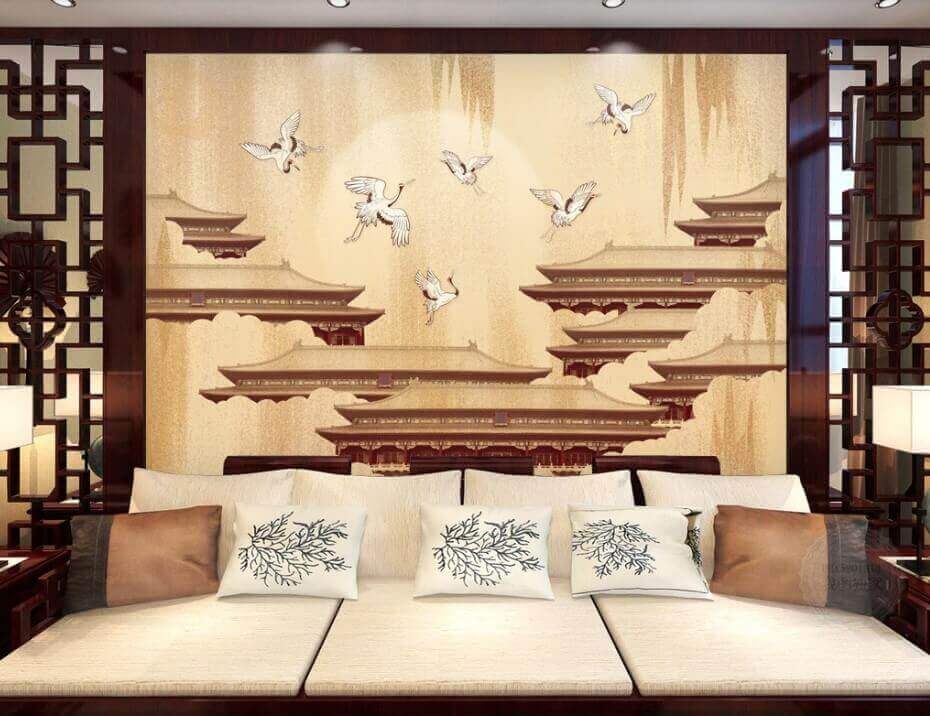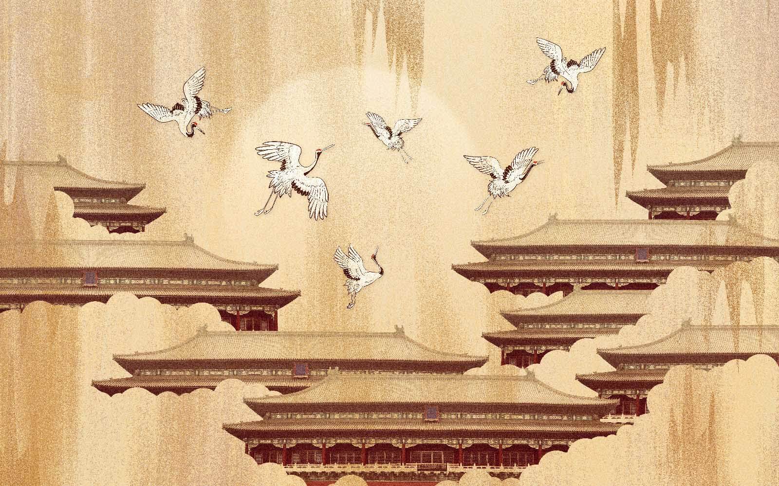 Imaginați-vă că intrați într-o cameră împodobită cu această pictură murală uimitoare a cocorilor care se înalță grațios pe cer. Fiecare pasăre pare prinsă într-un moment de libertate, alunecând deasupra acoperișurilor elegante care șoptesc povești despre ținuturi îndepărtate. Această pictură murală nu decorează doar peretele; transformă întregul spațiu, invitând la pace și seninătate.