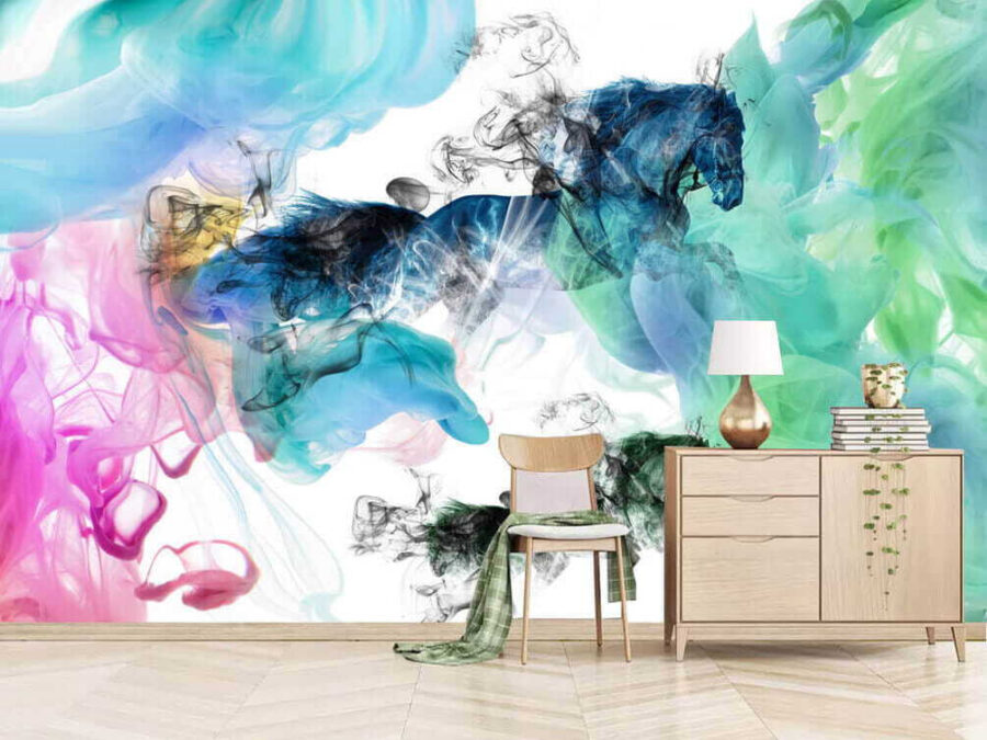 Transformați orice spațiu cu această pictură murală captivantă cu cai care dansează printre nori colorați de fum. Este ca un vis cu ochii deschiși în care arta și imaginația se ciocnesc. Nuanțele vibrante – gândiți-vă la albastru amestecat cu rozuri jucăușe – aduc energie și farmec, ceea ce o face un starter de conversație cu siguranță. Imaginați-vă-o într-un colț de lectură confortabil sau pe un perete îndrăzneț. S-ar putea să inspire o petrecere de dans improvizată sau seri calme cu o carte și o ceașcă de ceai. Cu fiecare privire, vă veți simți un pic mai viu, ca o gură de aer proaspăt chiar în casa dvs. În plus, cui nu-i place un cal care galopează printr-un nor colorat? Asta da vibrație!