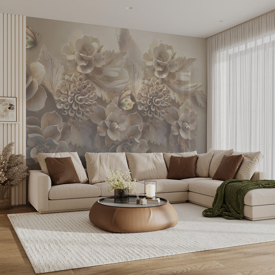 Fototapet Flori elegante cu fluturi grațioși Fototapet Flori elegante cu fluturi grațioși