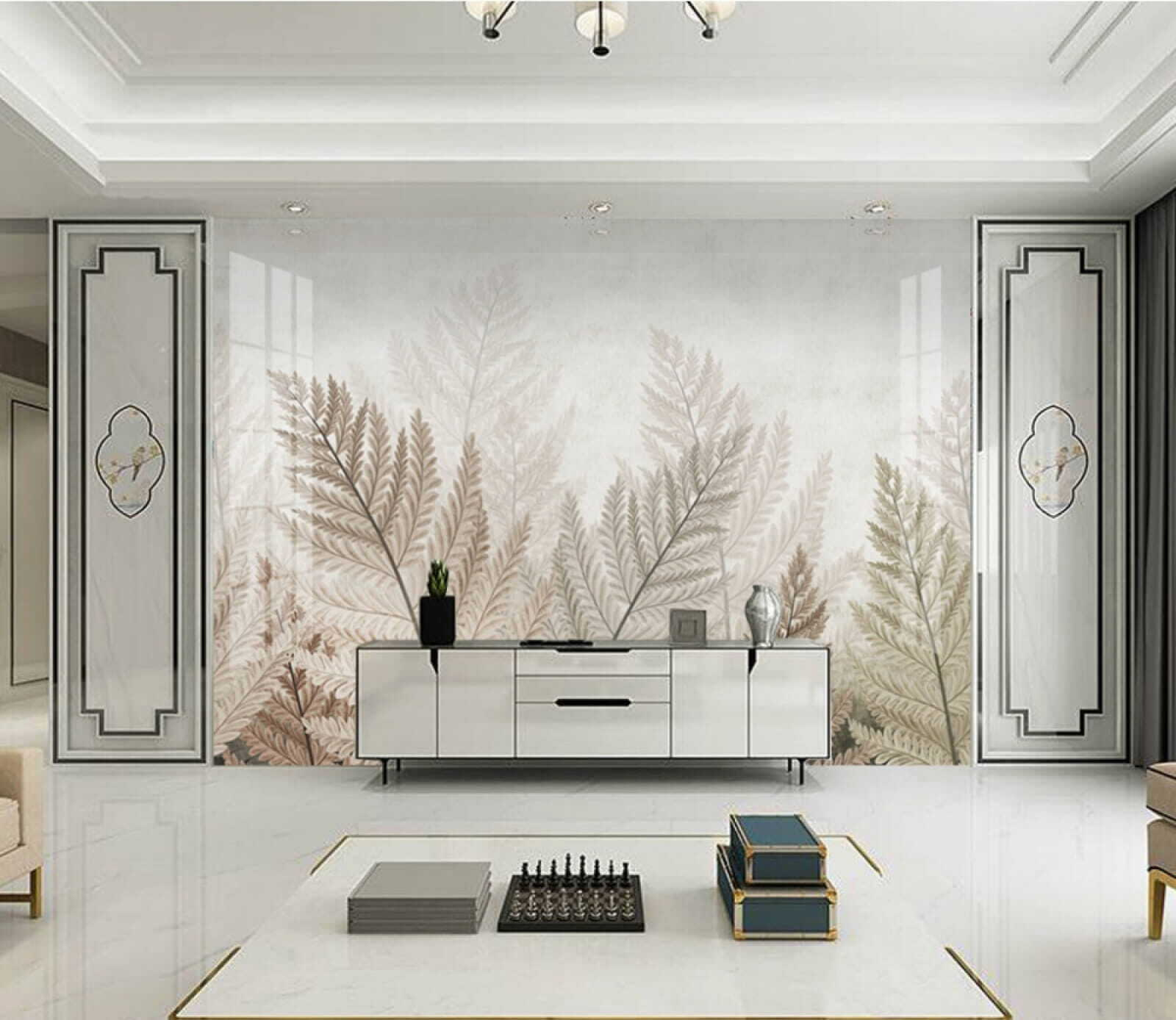 Transformați un perete gol într-un refugiu senin cu această pictură murală încântătoare cu desene delicate de ferigă pe un fundal moale. Imaginați-vă că intrați într-o cameră în care frunzele verzi par să vă șoptească secretele pădurii. Este ca și cum natura ar fi decis să intre pentru o discuție. Perfectă pentru colțurile de lectură confortabile sau spațiile de locuit aerisite, această pictură murală invită la o atmosferă calmă și revigorantă. Culorile atenuate îi fac pe toți să vorbească, fără a fi prea puternice. Este genul de atingere care face ca o cameră să fie atât primitoare, cât și elegantă, îmbinându-se fără efort cu toate tipurile de decor. De ce să nu lăsați puțină verdeață să intre?