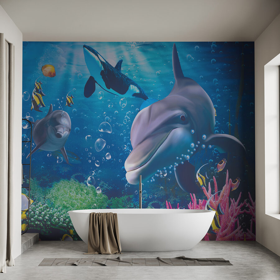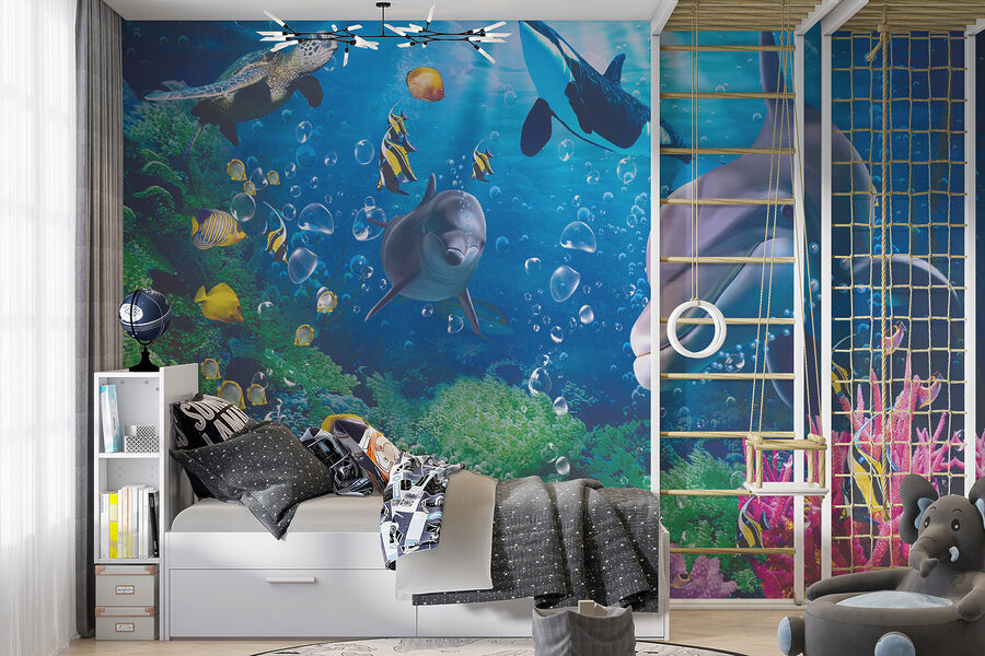 Scufundați-vă într-o lume a minunilor cu această pictură murală vibrantă cu țestoase care înoată fericite într-o scenă subacvatică plină de viață. Imaginați-vă că priviți delfinii jucăuși și peștii colorați care se avântă prin recifele de corali, transformând o cameră simplă într-o oază acvatică magică. Este ca și cum ai avea un paradis subacvatic secret chiar pe peretele tău, stârnind bucurie și creativitate. Perfect pentru copii sau pentru toți cei tineri la suflet, acesta adaugă un strop de distracție și intrigă. Fiecare privire ar putea inspira un vis cu ochii deschiși despre aventurile oceanice și misterele adâncului albastru. Cine nu și-ar dori asta? Perfect jucăuș, acesta transformă orice spațiu într-o evadare încântătoare. Perfectă pentru camera copilului, camera de joacă sau chiar un colț confortabil în care cineva se poate relaxa după o zi lungă.